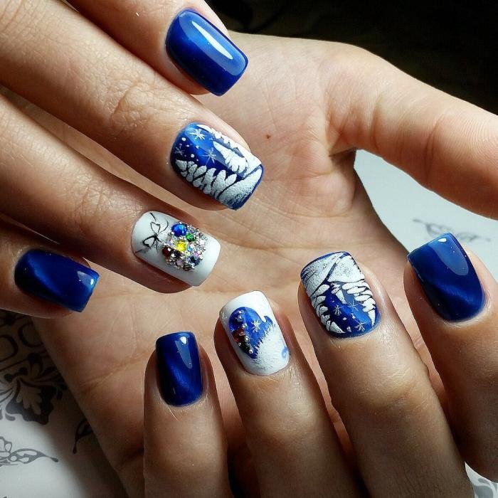 Comme mentionné ci-dessus, les dessins sur le thème de l'hiver les plus populaires sont des flocons de neige délicats et mignons. Une autre option très pertinente sera les images d'oiseaux. Les symboles du Nouvel An sont également à la mode aujourd'hui. Ce sont: des guirlandes de fête, des jouets de Noël, des guirlandes. Un accent délicat sur les thèmes de l’hiver permettra de créer des motifs sous la forme d’une toile d’araignée, de brindilles, de glaçons et de courgettes glacées. Cette année, pendant la saison froide, vous ne pouvez pas vous passer de motifs ethniques vifs, qui sont très liés à l’hiver, au confort de la maison et aux vacances en famille.