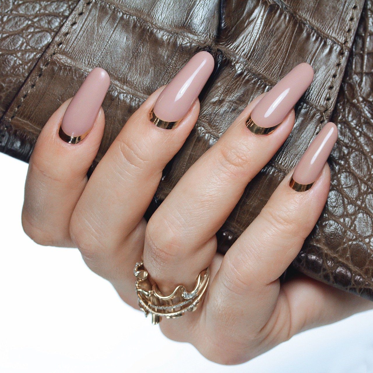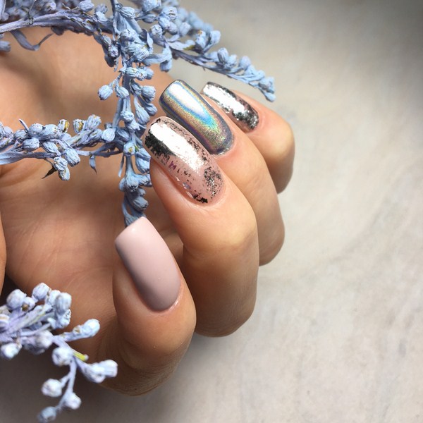 La couleur bronze, argent, or est sans aucun doute le choix le plus réussi pour l'hiver 2026. Une manucure dans la technique du métal est tout simplement étonnante par sa beauté et son originalité. Avec une telle manucure, elle se démarque simplement des autres, en mettant l'accent sur l'individualité et le style. Cette année, les revêtements holographiques spectaculaires de tons bleu-vert, saphir et olive sont très populaires.