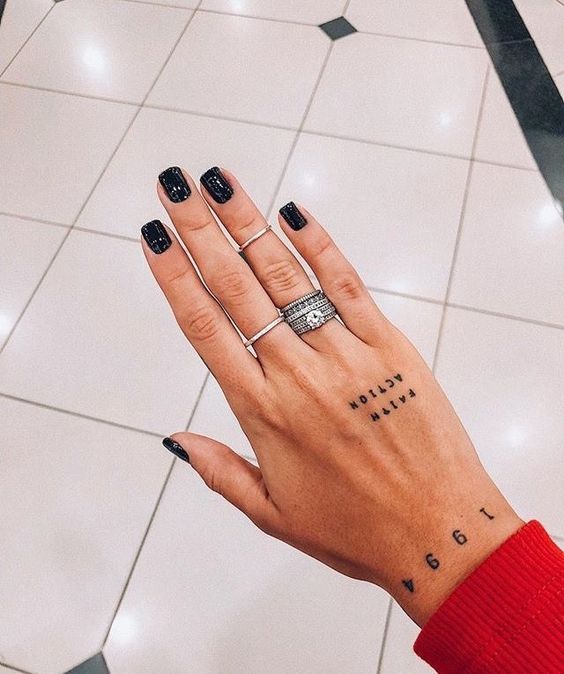 En 2026, les tatouages pour filles sous forme d’inscriptions, de lettres ou de mots réalisés dans une belle et originale police de caractères restent à la pointe de la popularité. Vous pouvez choisir un seul mot comme tatouage ou une phrase entière avec un sens. Un tel tatouage à la mode devrait être fait dans la langue de votre choix. Si vous êtes une personne romantique et que l’inscription habituelle, même faite dans la police d’origine, vous semble ennuyeuse, n'hésitez pas à la compléter avec de belles boucles, des images d’oiseaux, de papillons, de coeurs ou d’étoiles. Les inscriptions de tatouage faites en noir sont considérées comme à la mode, ce qui souligne la gravité et le laconisme du tatouage.