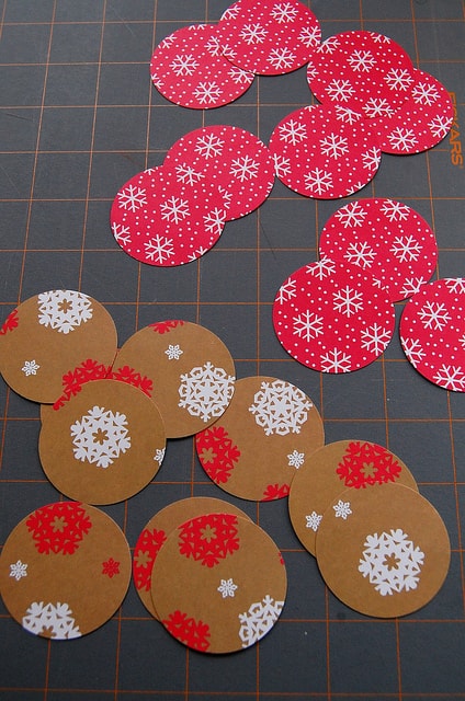 Nous préparerons des découpes pour créer un jouet d’arbre de Noël. Pour ce faire, dessinez des cercles de même taille sur du papier ou du carton avec une boussole et découpez-les. Le résultat devrait être vingt et un blancs.