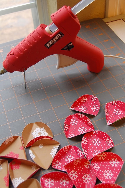 Nous collons la première et la dernière pièce ensemble. Cette conception sera la partie centrale du jouet d'arbre de Noël.