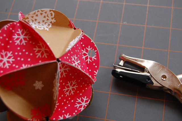 Sur le jouet fini, on fait un trou avec une perforatrice et on y passe un ruban ou un fil dense.