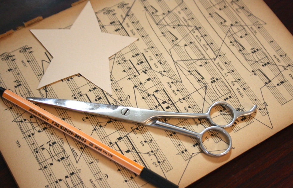 Pour fabriquer un jouet en forme d'étoile, nous découpons un pochoir dans un carton épais.