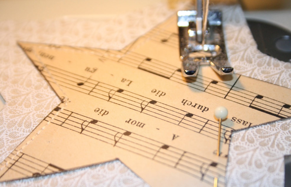 Coudre un papier vierge avec un tissu à l'aide d'une machine à coudre.