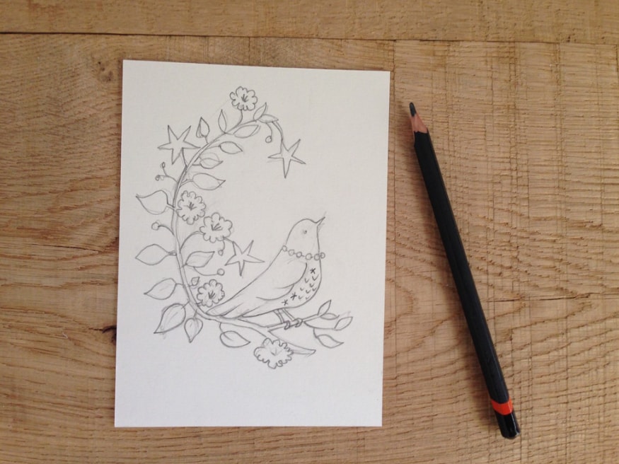 Séparez le papier aquarelle avec un croquis. Une option idéale serait avec des lignes pas trop claires.