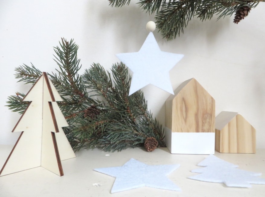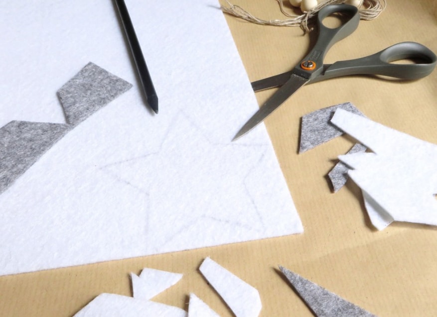 Sur feutre, dessinez les formes nécessaires. Dans cette classe de maître, il s'agit d'un sapin de Noël et d'un flocon de neige.