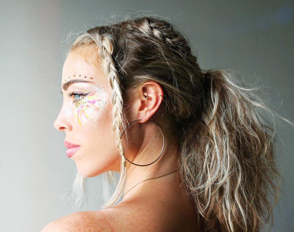 Il est souhaitable de compléter l'image du Nouvel An avec des accessoires de tête extravagants et un maquillage éblouissant sous la forme de lèvres métalliques, de paupières chatoyantes, de pommettes, de clous, de sourcils et même d'oreilles!