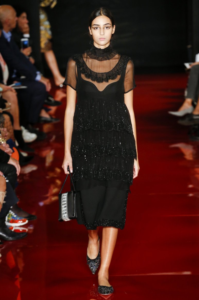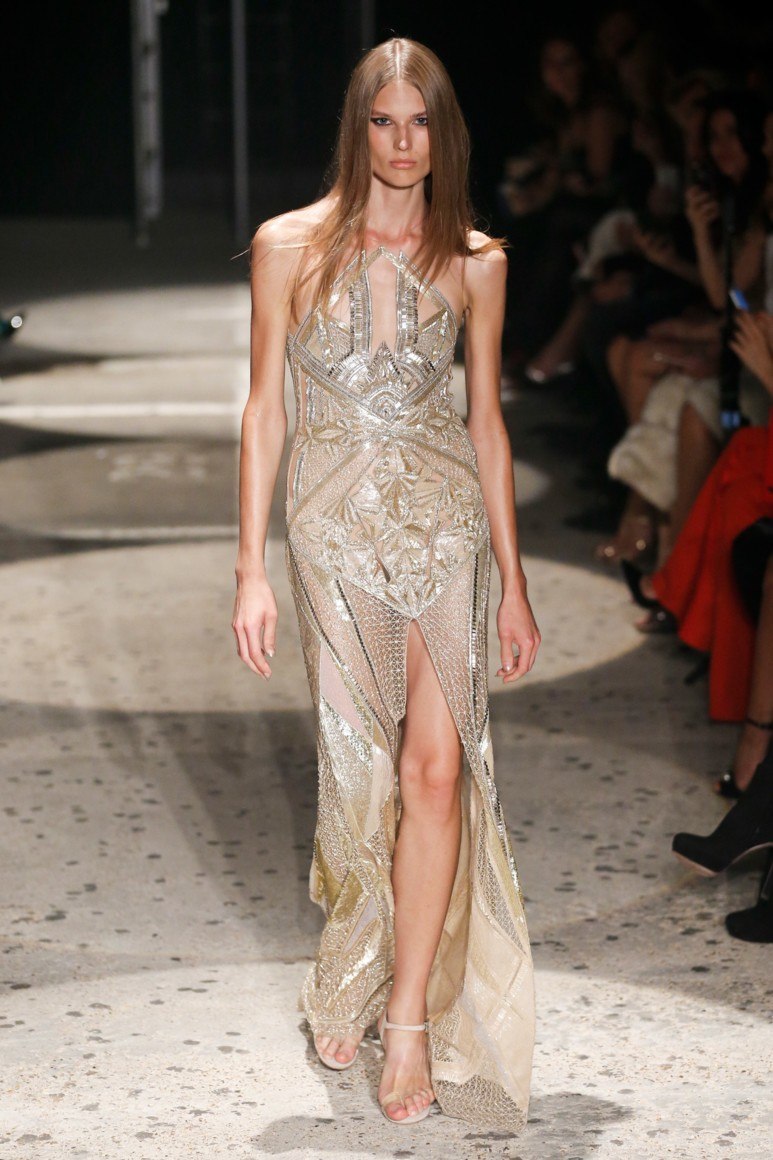 Dans les nouvelles collections de robes de soirée, des modèles avec un bel ornement, loin du thème du Nouvel An, ont trouvé leur place. Le motif prédominant sur les robes est floral. Nous voyons de tels modèles dans les collections de NAEEM KHAN et ROCHAS. La marque VERSACE s’appuie sur des motifs ethniques jaunes et la marque de mode ETRO sur des robes jaunes. En passant, le jaune est la couleur de la prochaine 2026. C'est pourquoi les stylistes ont décidé de proposer des robes originales dans toutes les variations de la nuance jaune. La marque "MOSCHINO" a introduit des modèles funky de robes qui créent l'effet d'un papillon. PASKAL dans sa collection offre une version du soir de la robe à pois métalliques et un style sportif. De plus, «DAVID KOMA» et «CAROLINA HERRERA» ont présenté aux femmes à la mode des robes de Nouvel An en noir et blanc avec un imprimé à carreaux et à rayures classique.