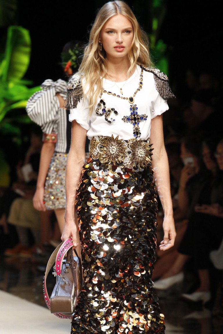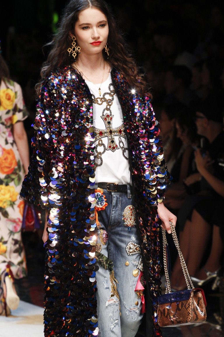 Les couturiers Les maisons de haute couture DOLCE & GABBANA proposent des cardigans et des jupes élégants garnis de larges paillettes chatoyantes. La robe argentée luxueuse et riche de la robe de JENNY PACKHAM est idéale pour une apparence de soirée. Grâce aux paillettes rouges, bleues, noires et blanches des robes et sarafans des marques «DAVID KOMA» et «JULIEN MCDONALD», une femme se transformera sûrement comme par magie en réveillon du Nouvel An en tant qu’objet de désir pour de nombreux hommes.
