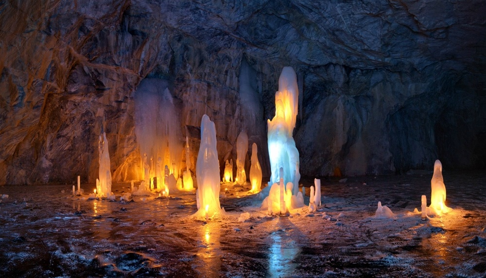 Il y a plus d'une douzaine de cascades dans la république. Girvas est le plus célèbre d'entre eux. Ses eaux sont si rapides qu'elles ne gèlent pas, même lors de fortes gelées. Les touristes gèlent d'étonnement devant les étranges formations rocheuses couvertes de neige et de glace.