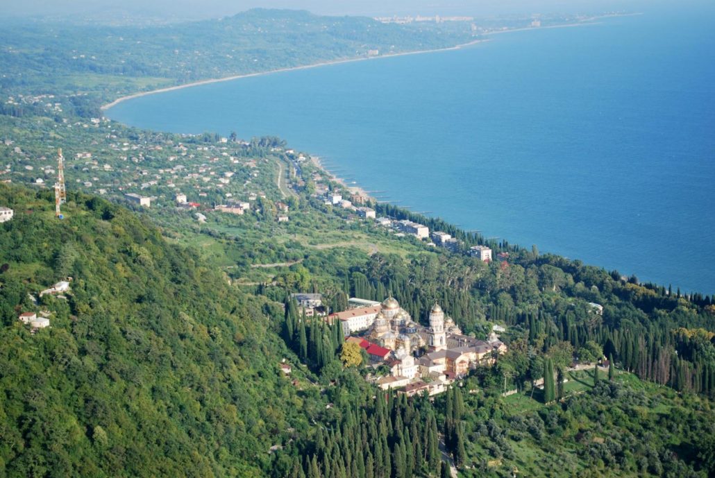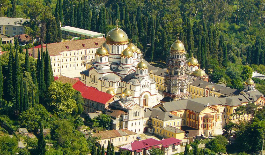 Il y a beaucoup d'endroits intéressants dans le village de villégiature. Le nouveau monastère d'Athos est l'un des plus intéressants. Il a été construit par les moines pendant 12 ans à partir de 1875. Après de nombreuses années de travail acharné, le monastère fut construit en 1896. Alexandre III en 1888 a même participé à sa construction. Pour la plus haute tour, il a présenté des carillons. Une particule de l'arbre de la croix vivifiante du Seigneur est le sanctuaire principal de cet endroit. Dans ce monastère, il y avait des usines de fonderie, de chaussure, de montre, de couture, de reliure, de crémerie, de briques et de bougies. En 1924, il fut complètement fermé et ce n’est qu’après 70 ans que la renaissance du sanctuaire commença.