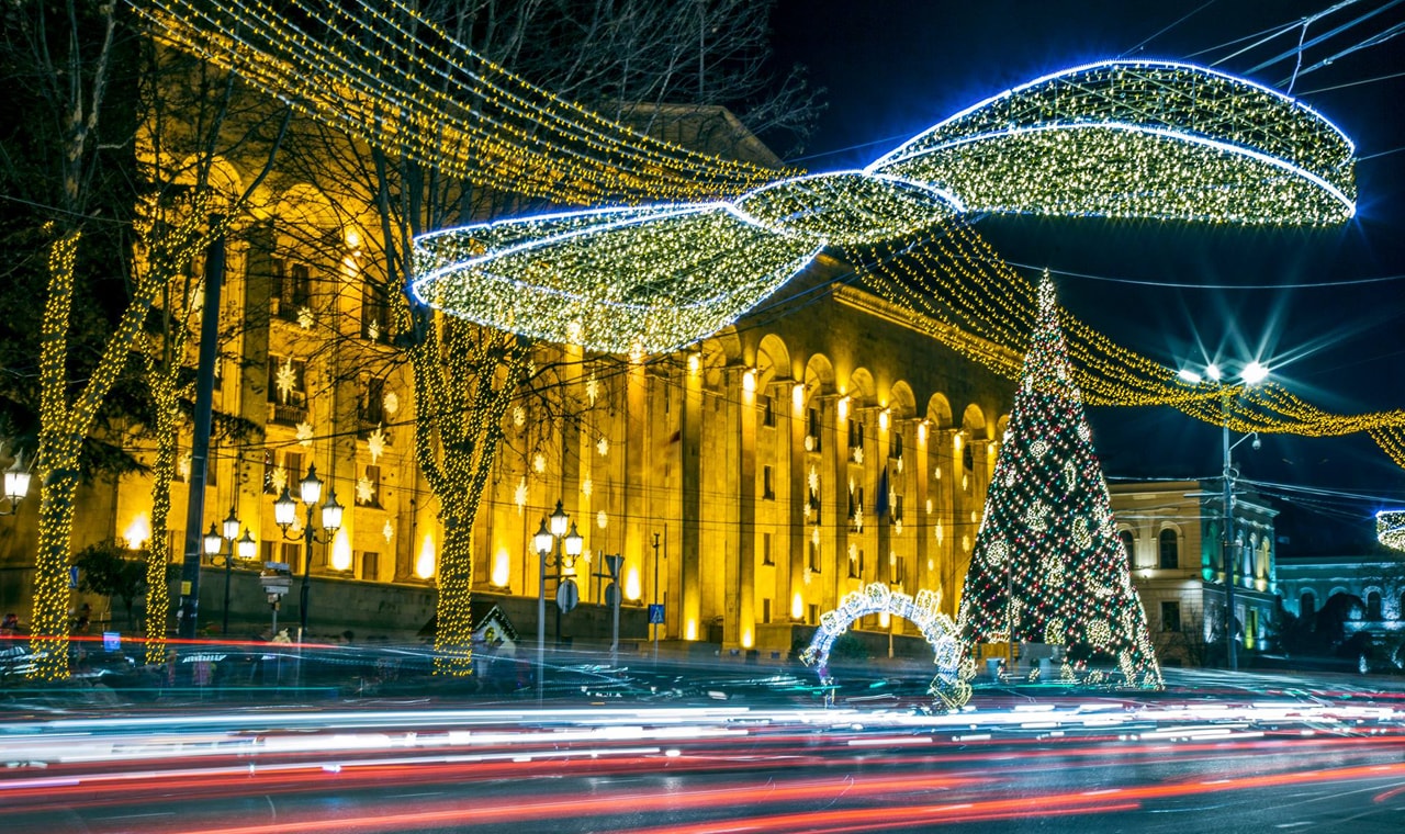 Sur l'avenue Rustaveli, vous pouvez visiter les "villages du Nouvel An". La foire et l'arbre principal du Nouvel An sont situés ici. Il est recommandé de visiter le complexe de bains Abanotubani, les anciennes cathédrales et les forteresses.