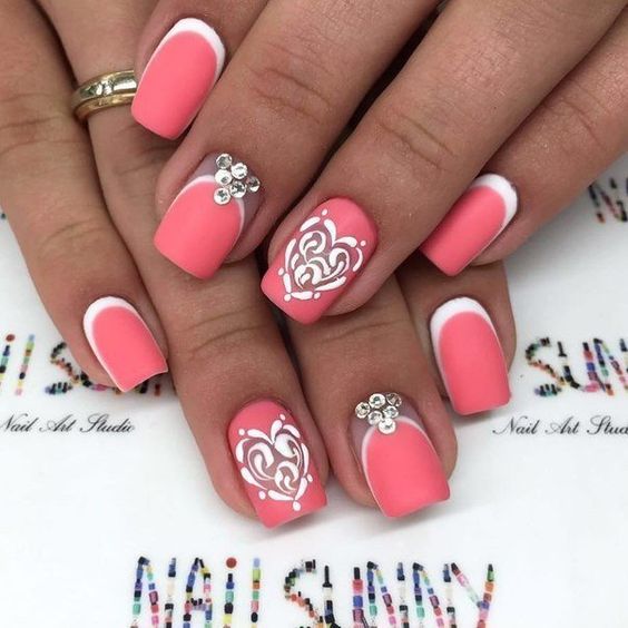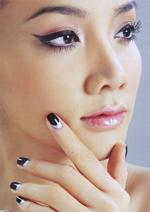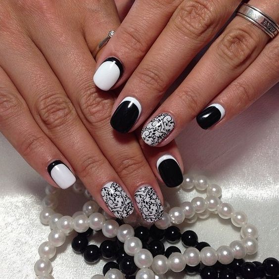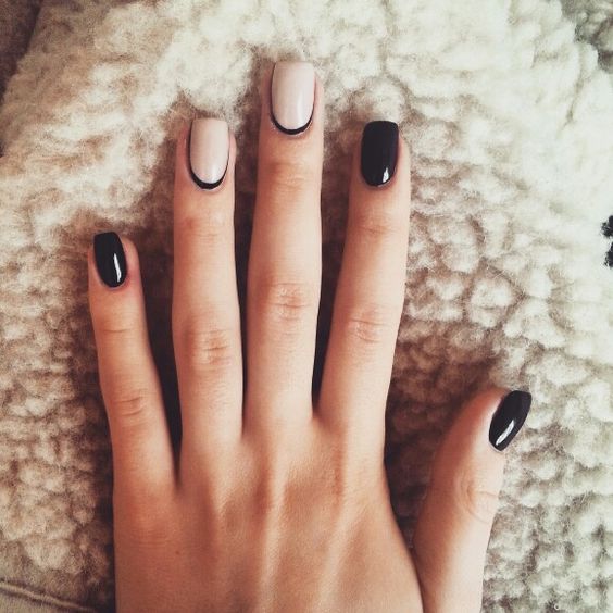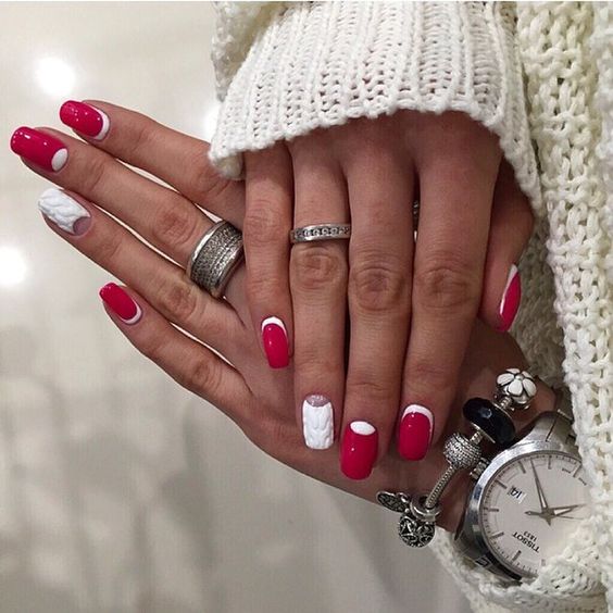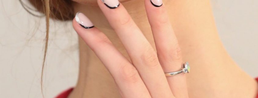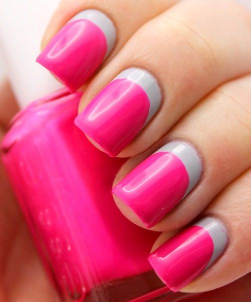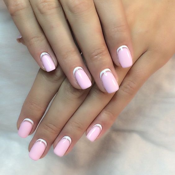 Dans la version classique de la veste inversée, le rose est supposé être utilisé comme couleur de base. La deuxième couleur dépend du personnage que vous souhaitez définir pour une manucure. Choisissez le blanc si vous préférez la légèreté, mais en même temps la retenue. À son tour, le noir rendra le dessin un peu plus rigoureux en raison du contraste.
