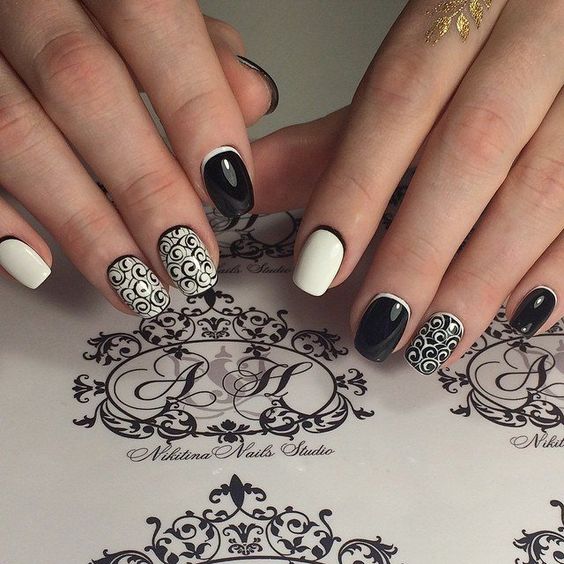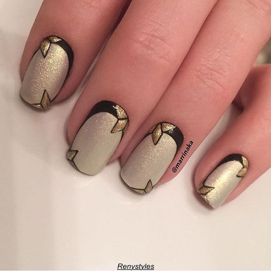 Pour ceux qui veulent diluer un peu les classiques, nous recommandons de choisir des vernis avec un effet métallique. Par exemple, la combinaison de rouge et d'or ou de noir et d'argent est très belle. La veste inversée dans une telle palette de couleurs convient même pour une soirée ou un événement thématique. Si vous le souhaitez, vous pouvez également le décorer avec des strass ou du scotch.