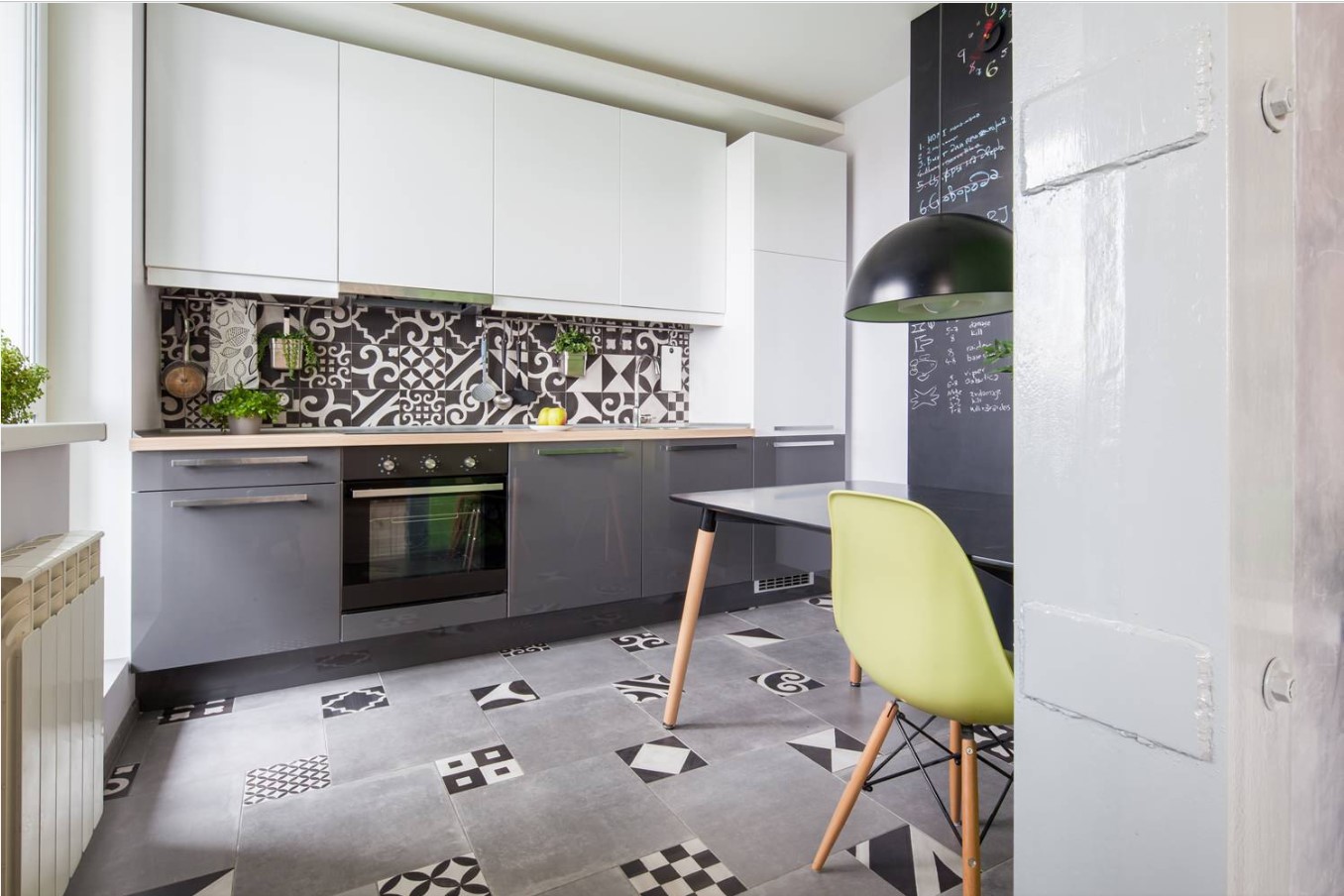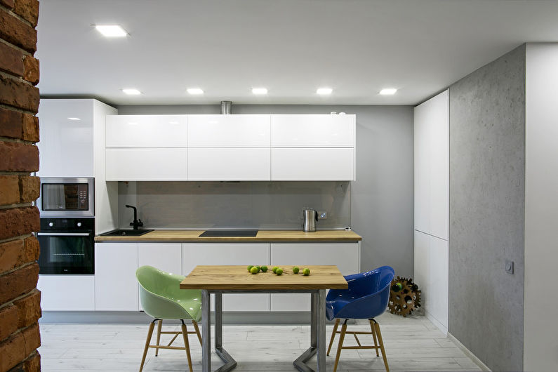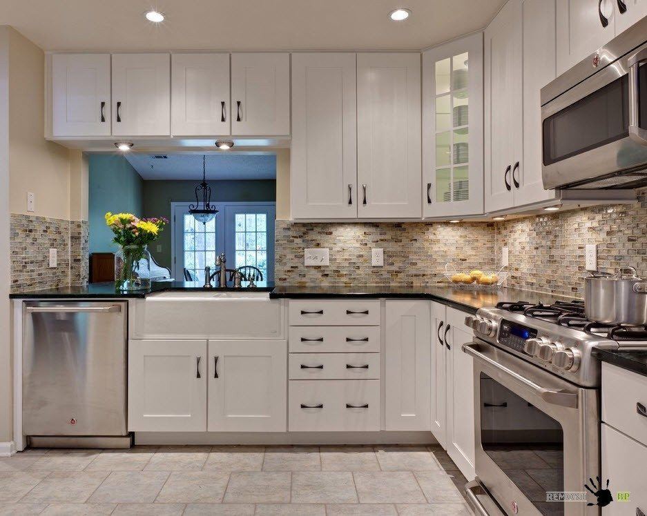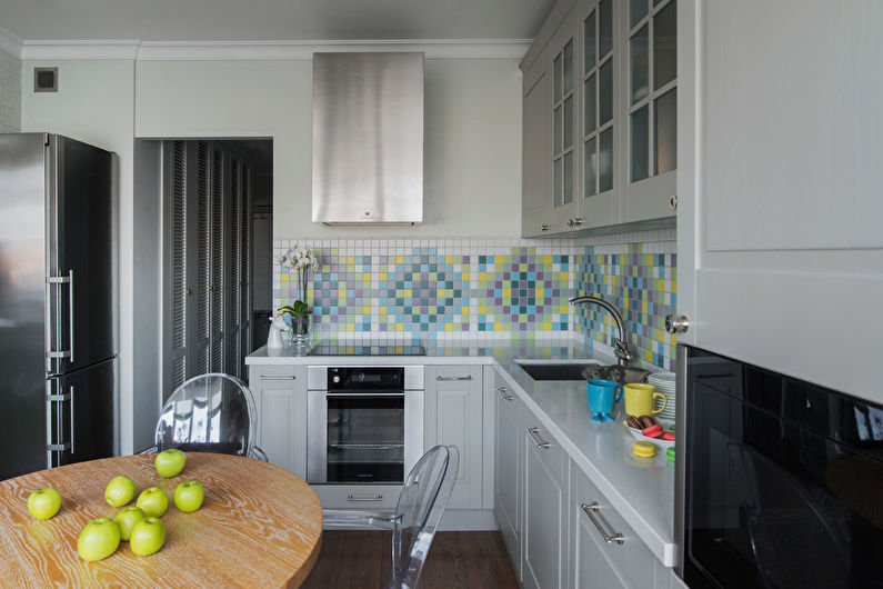 Les carreaux de céramique peuvent avoir différentes couleurs et formes. Le style moderne de la cuisine implique l'utilisation de motifs carrés et hexagonaux. Dans la conception classique, plusieurs options décoratives peuvent être utilisées.