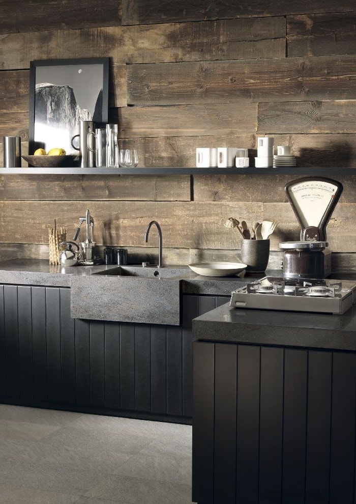 De tels modèles ne peuvent pas être considérés comme une option idéale pour la cuisine, car le matériau lui-même est capable d'absorber la saleté, les odeurs et l'humidité. Cependant, pour certains, la convivialité environnementale du bois devient un élément essentiel de la conception d'une cuisine. Dans ce cas, le revêtement doit être prétraité avec des huiles et des vernis spéciaux. Un tablier en bois peut faire partie de n'importe quel style. Il peut être combiné avec d'autres éléments de la cuisine. Les tabliers en MDF sont une option plus abordable.