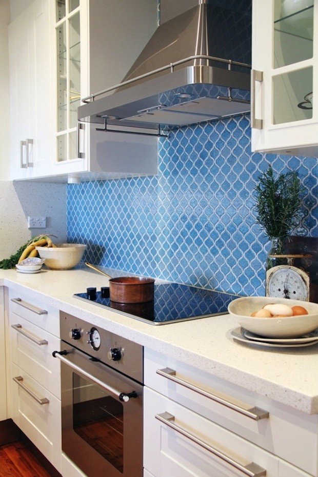 Étant donné que les carreaux de céramique sont résistants à l'humidité, aux températures élevées et aux produits chimiques, ils sont durables et d'un coût abordable. C'est elle qui est le matériau le plus populaire pour la finition d'un tablier de cuisine. Le seul inconvénient d'un tel revêtement sont des joints capables d'absorber des liquides et divers contaminants. Mais pour résoudre ce problème aidera les matériaux imperméables spéciaux.