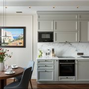 Un tablier de cuisine est appelé la partie du mur qui se trouve dans la zone de travail entre les armoires murales et murales. Étant donné que cette surface est très sensible à la contamination, des exigences très strictes sont imposées aux matériaux utilisés pour la finition.