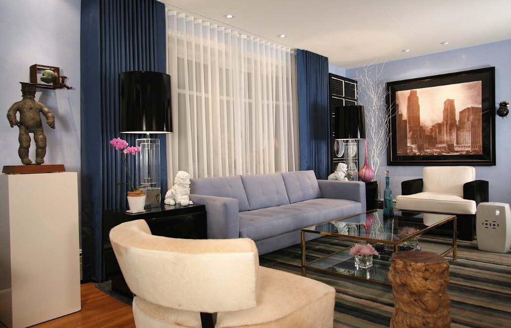 De nombreux concepteurs se félicitent de l'entrée libre de la lumière naturelle dans la pièce et préfèrent ne pas couvrir les ouvertures des fenêtres avec des rideaux. Mais une telle solution n'est pas acceptable pour tout le monde, car la salle peut être située sur le côté ensoleillé du bâtiment, au rez-de-chaussée, etc.