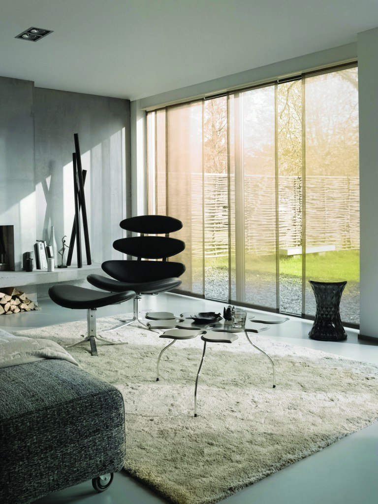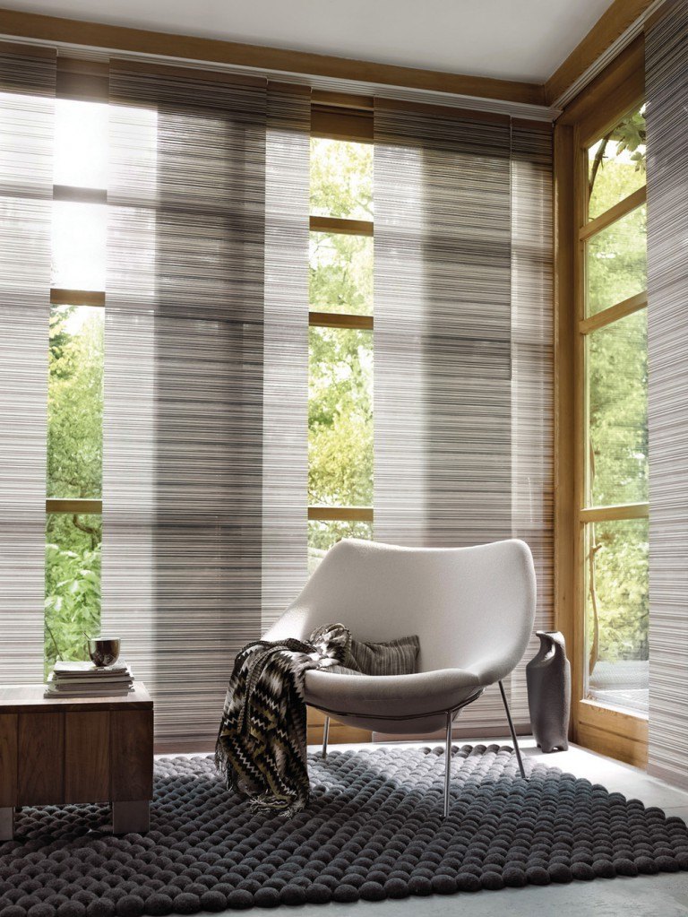 Rideaux japonais. Lors de la fabrication de grandes fenêtres panoramiques, de tels écrans en tissu deviendront indispensables. Ils sont capables de maintenir l'intimité de l'environnement à l'intérieur et en même temps, les rayons du soleil sont parfaitement capables d'éclairer la pièce.