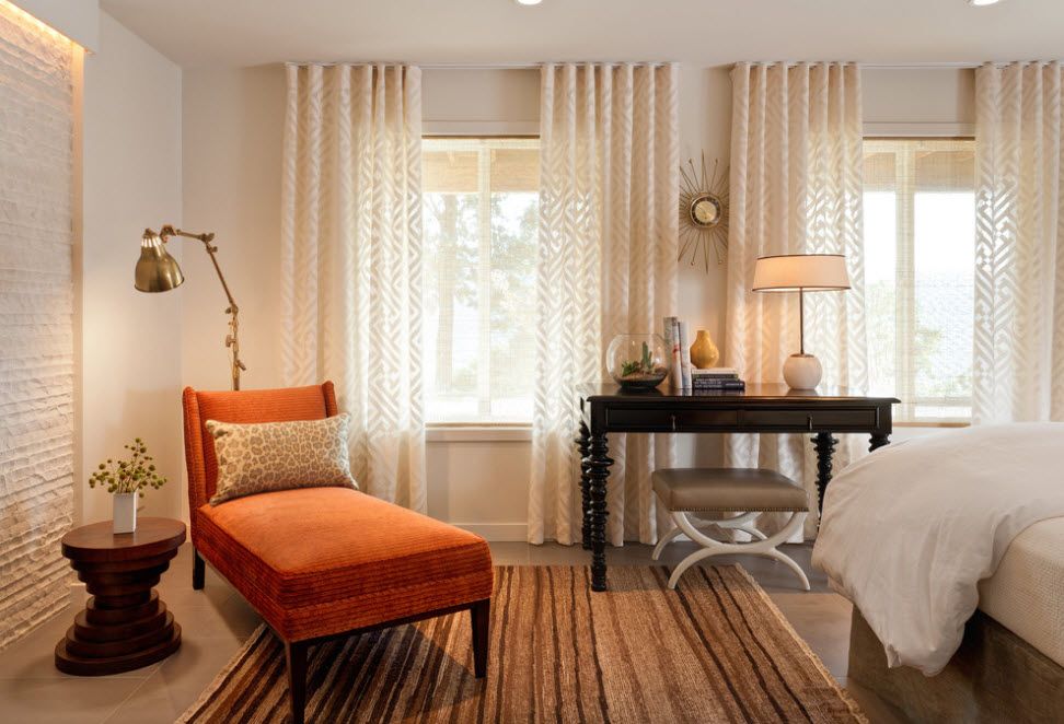 Le but le plus important des rideaux dans la chambre est de fournir un sommeil et un repos confortables. Quels que soient les rideaux, le tissu à partir duquel ils sont fabriqués doit être opaque et dense. Et puis les rideaux seront en mesure de fournir un repos confortable, créant un crépuscule, même pendant la journée.