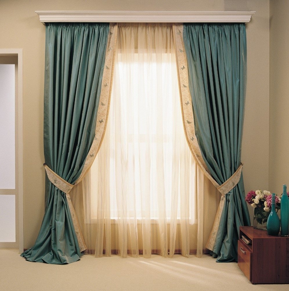 Une bonne option dans un style moderne lors de la conception d’une fenêtre sont des rideaux en tissu épais, qu’ils complètent avec un rideau blanc et aéré. Pour les fans de design traditionnel, ce sera une solution valable sans beaucoup d'excentricité et de prétention.