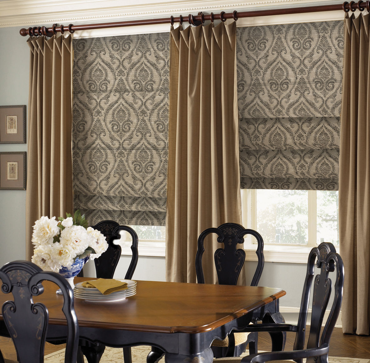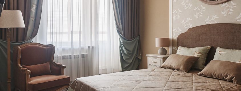 Les stores ou les rideaux romains peuvent être conseillés aux amateurs de technologie de pointe et de minimalisme. Les rideaux en organza laconique seront appréciés des amateurs de dessins classiques.