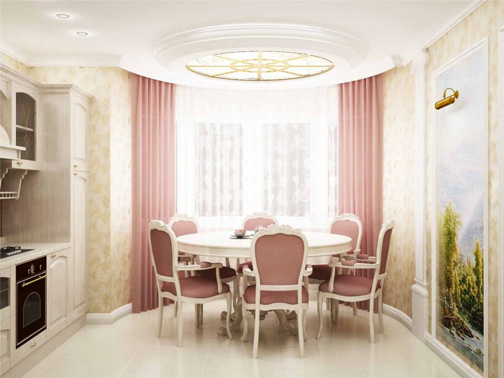 Il vaut la peine de refuser de froisser une magnifique draperie, car même la hotte la plus moderne et la plus fiable ne peut pas protéger de l’accumulation des odeurs de cuisine et de la suie.