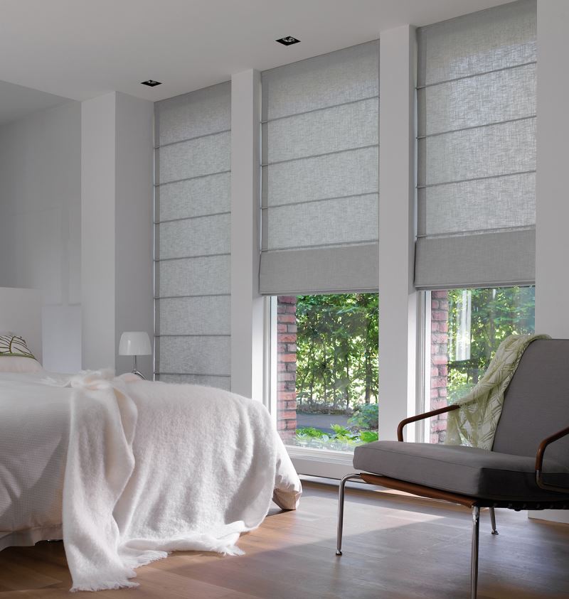 Les rideaux romains peuvent être choisis en toute sécurité pour les chambres à coucher avec une petite fenêtre. À travers la feuille laminée, les rayons du soleil ne pourront pas pénétrer dans la chambre à coucher et les rideaux préserveront le mystère de la solution intérieure créée.