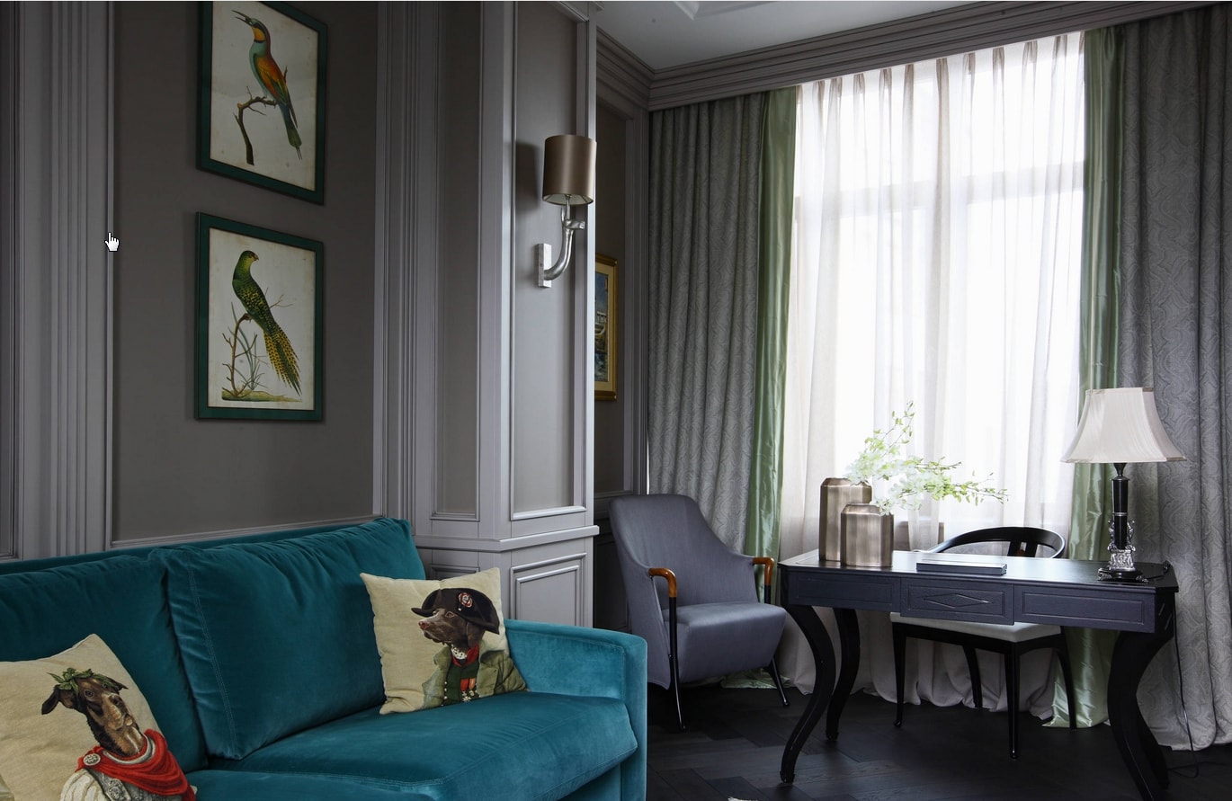 À l'intérieur, la couleur est créée par les murs, les sols et les meubles. Entre eux, ils devraient se chevaucher ou se combiner. Le ton des meubles devrait être la couleur des murs.