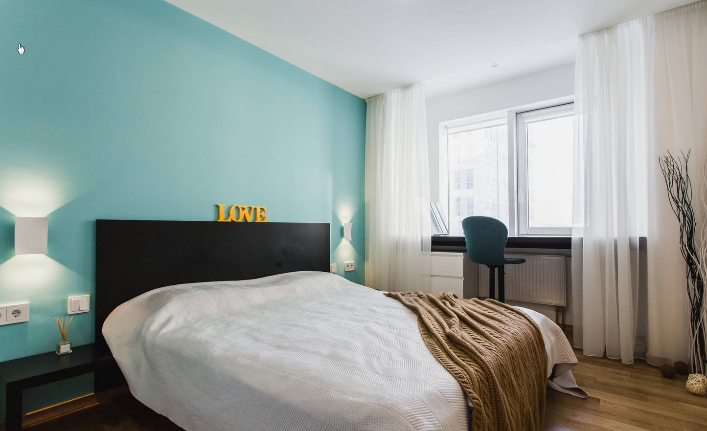 La surface à peindre doit être parfaitement plane. Par conséquent, ce n’est pas l’option de finition la moins chère, malgré la facilité de la peinture. La palette de couleurs est énorme. Pour décorer les murs, des peintures au silicate, au silicone, au latex et à l’acrylique sont utilisées. Lorsque vous modifiez le design de la chambre à coucher, vous pouvez facilement changer sa teinte.
