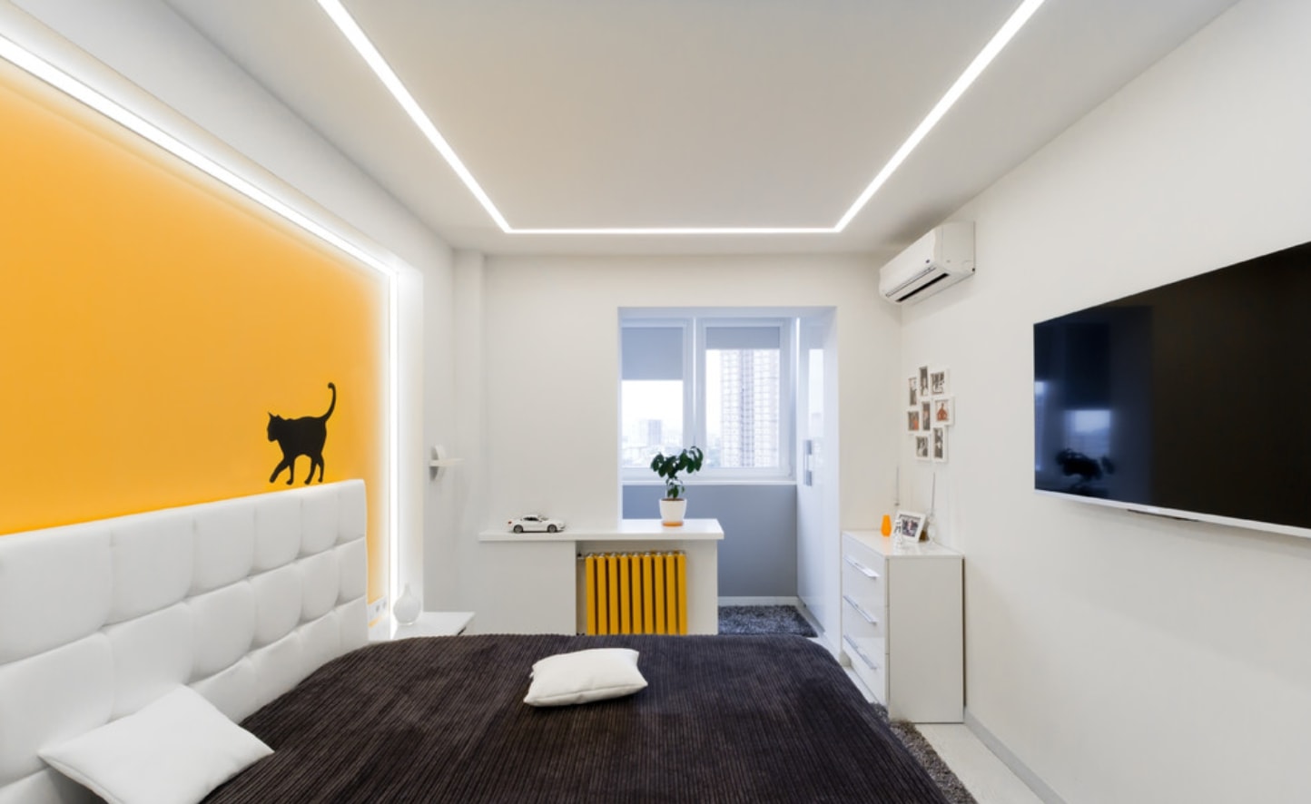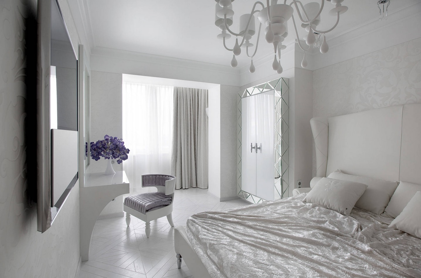 Les murs blancs conviennent aux meubles sombres et clairs. Ils agrandissent visuellement la chambre et se combinent avec tous les styles.