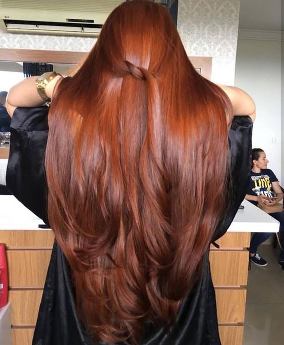 Pour les filles extraordinaires habituées à se démarquer de la foule, les stylistes suggèrent de rendre la couleur des cheveux plus intense. Pour ce faire, vous devez effectuer une coloration avec une couleur profonde et dans un ton. Les nuances les plus populaires pour les cheveux longs sont: noir, cuivre, rouge et platine.