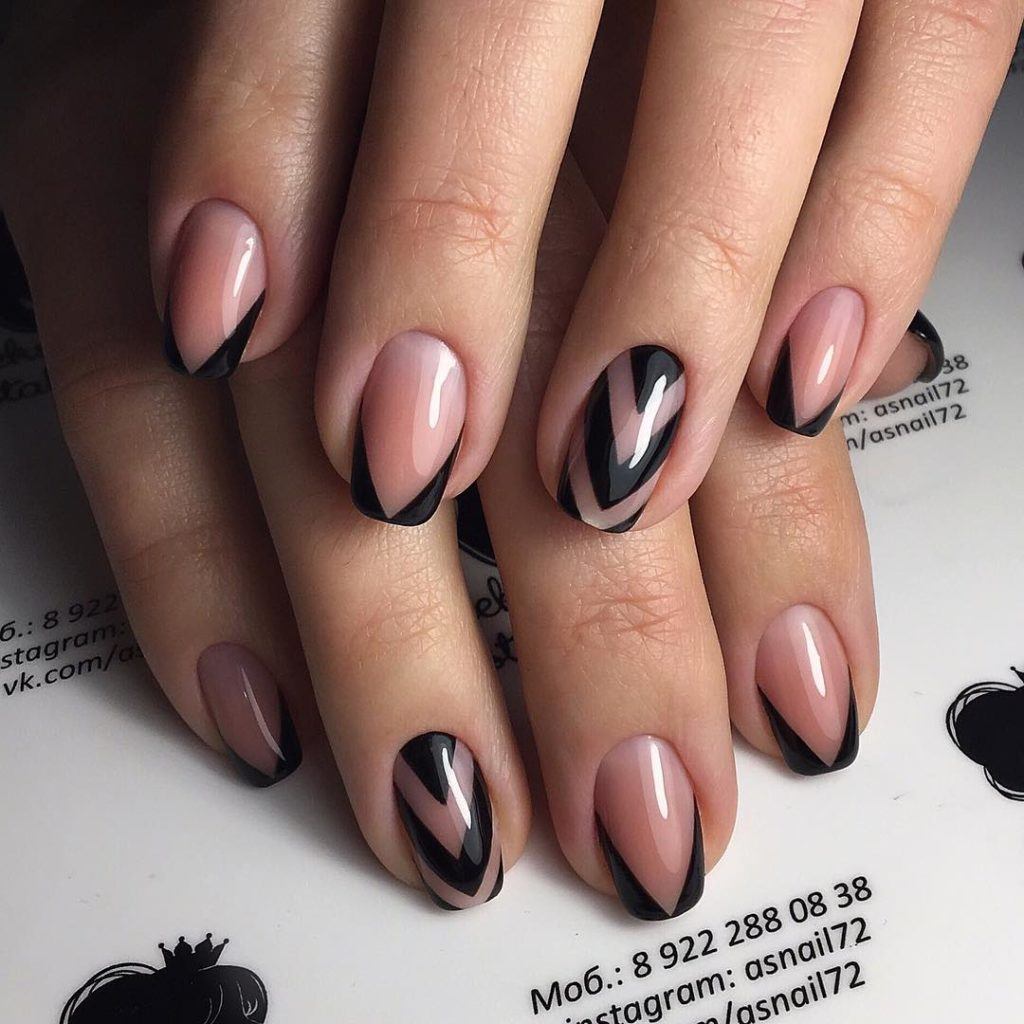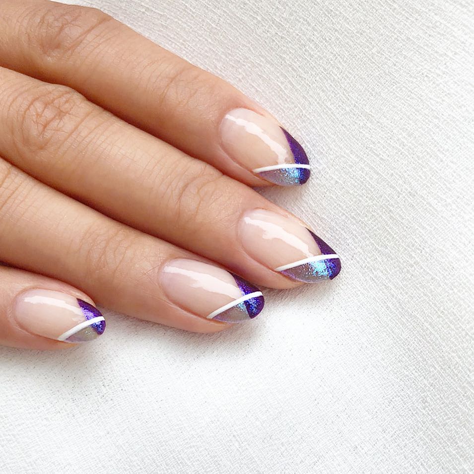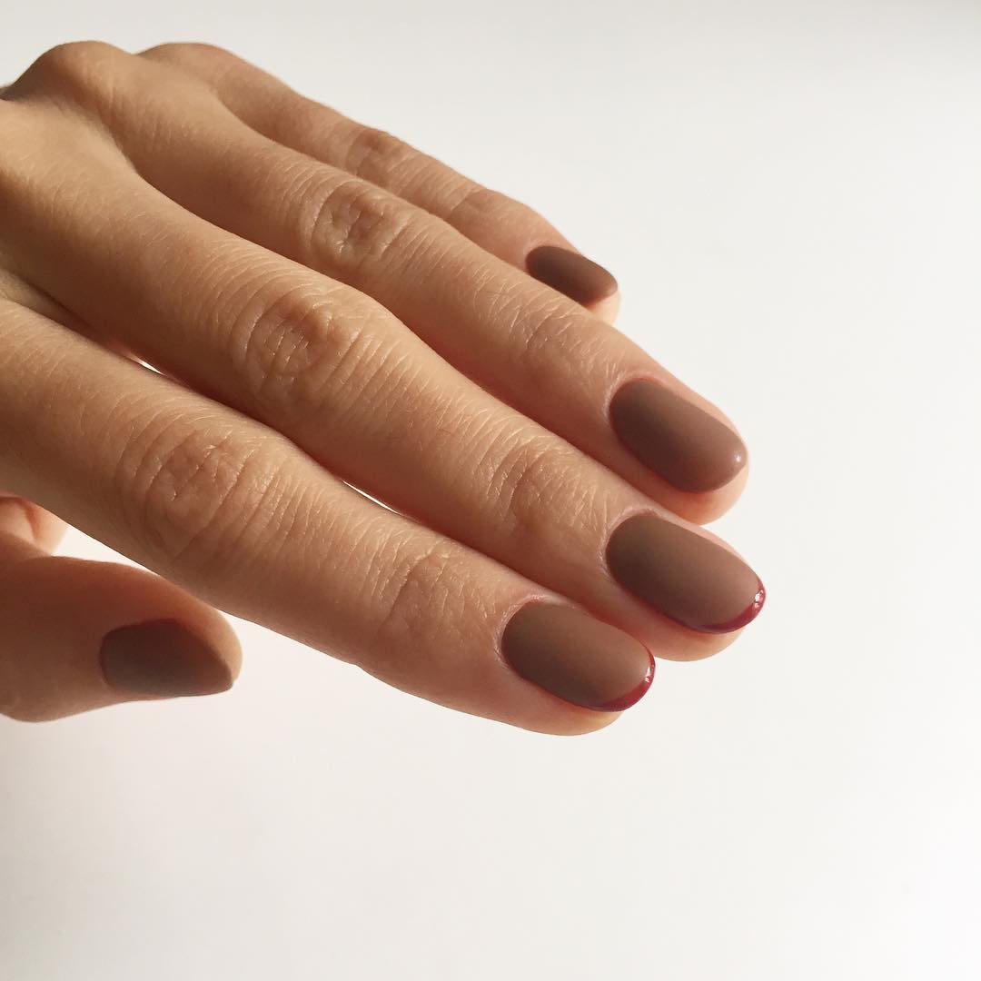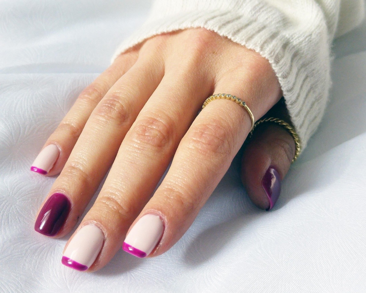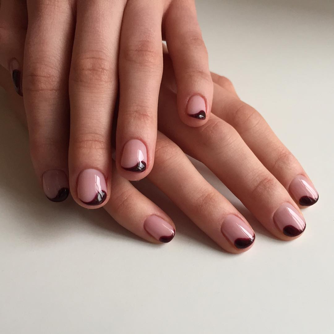 Beaucoup de gens connaissent un millénaire français. Cela signifie qu’une fine bande de vernis est appliquée sur l’ongle et que l’ombrage vertical s’effectue par dessus. En conséquence, la manucure est assez lumineuse et élégante, ce qui en fait une bonne option pour un événement festif.