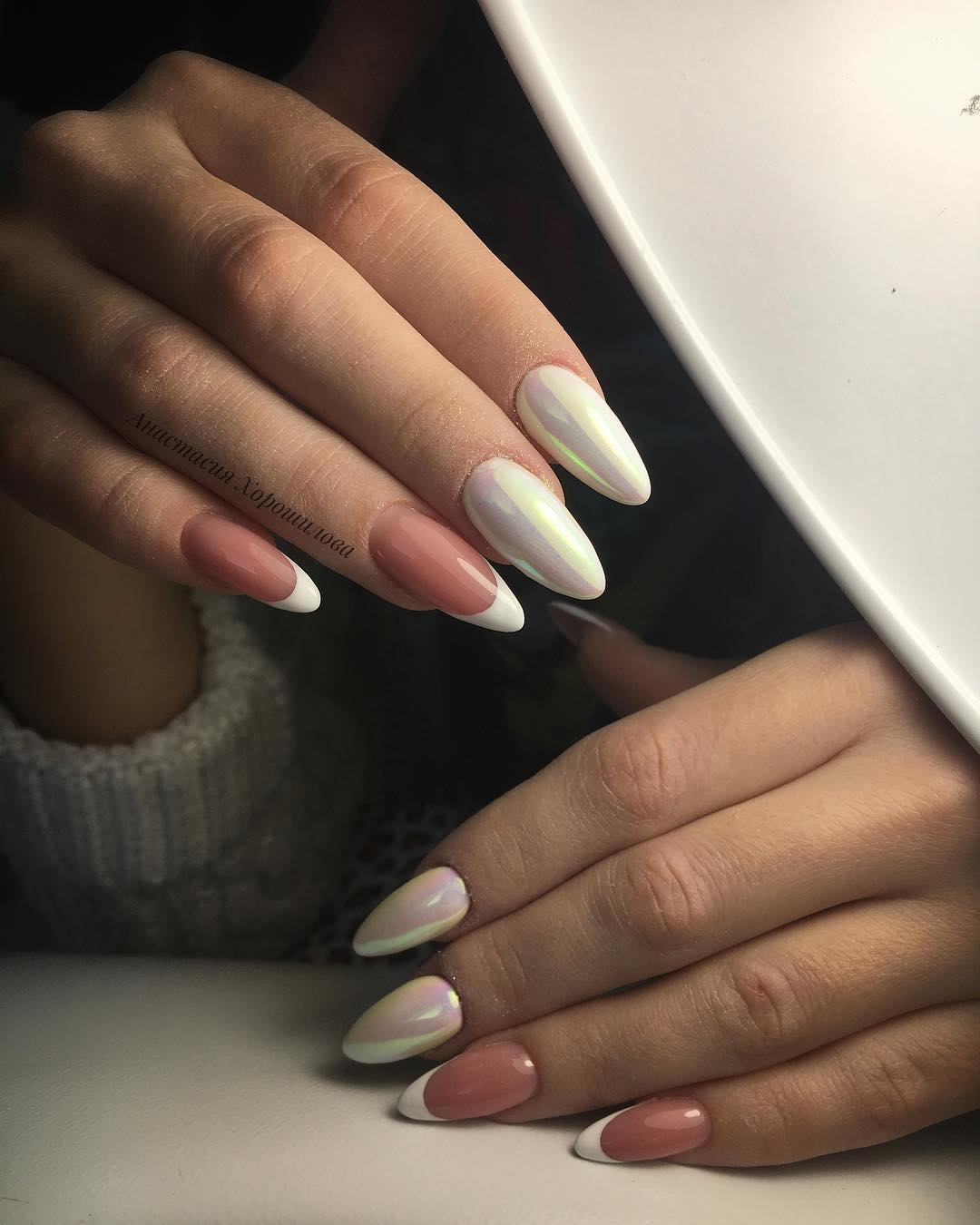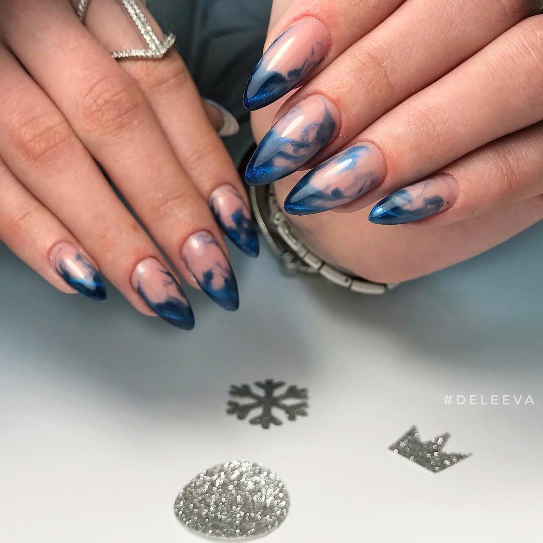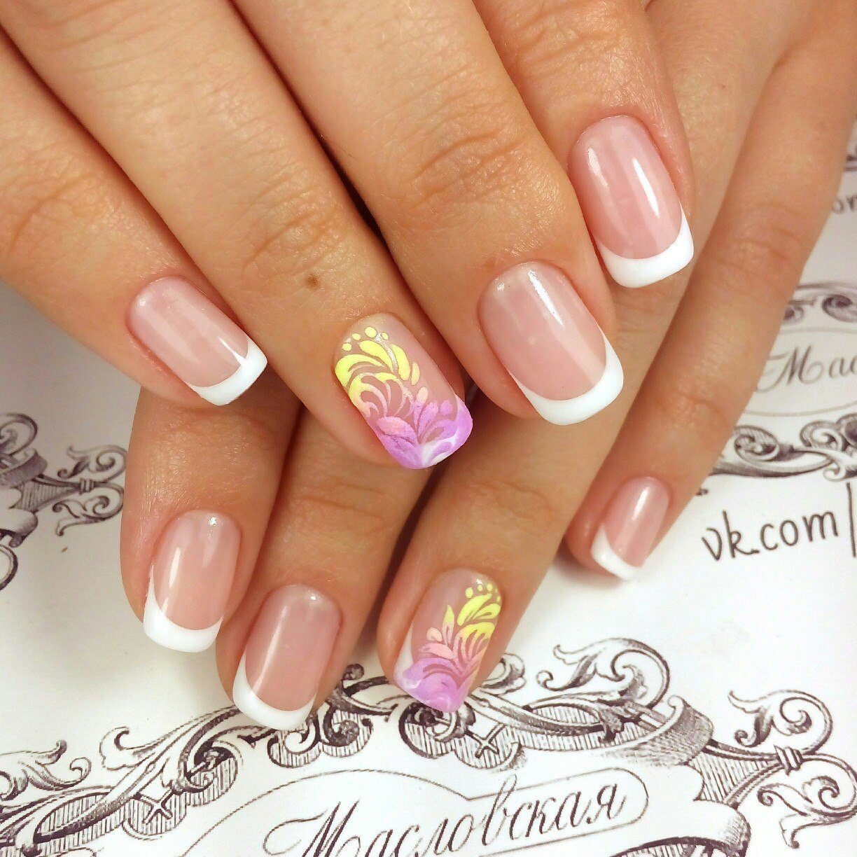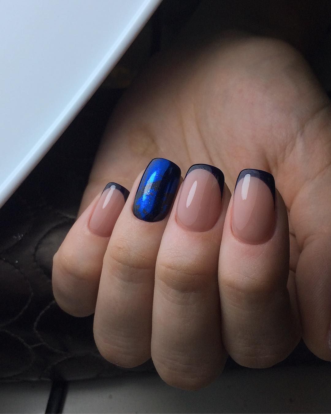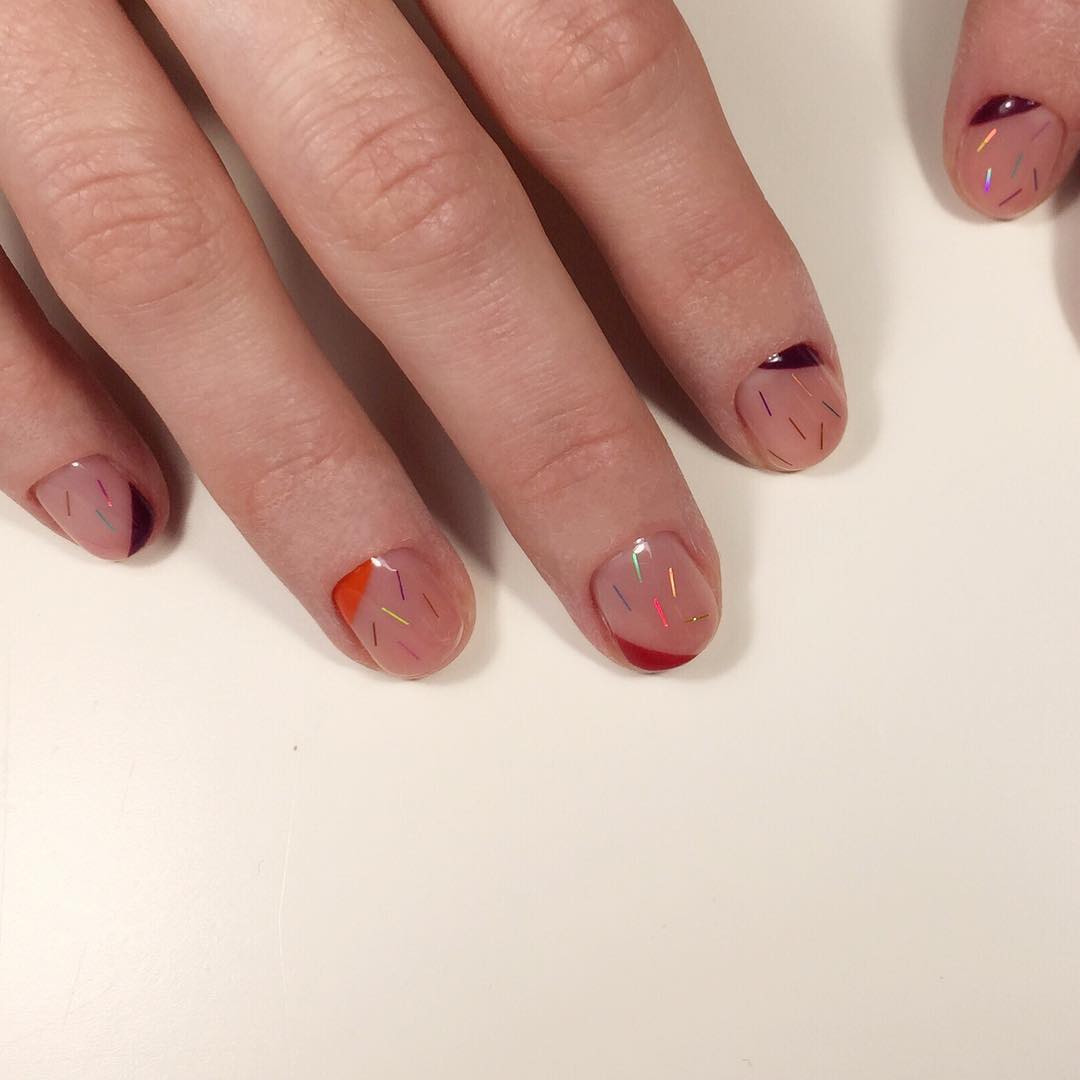 Beaucoup de gens connaissent un millénaire français. Cela signifie qu’une fine bande de vernis est appliquée sur l’ongle et que l’ombrage vertical s’effectue par dessus. En conséquence, la manucure est assez lumineuse et élégante, ce qui en fait une bonne option pour un événement festif.