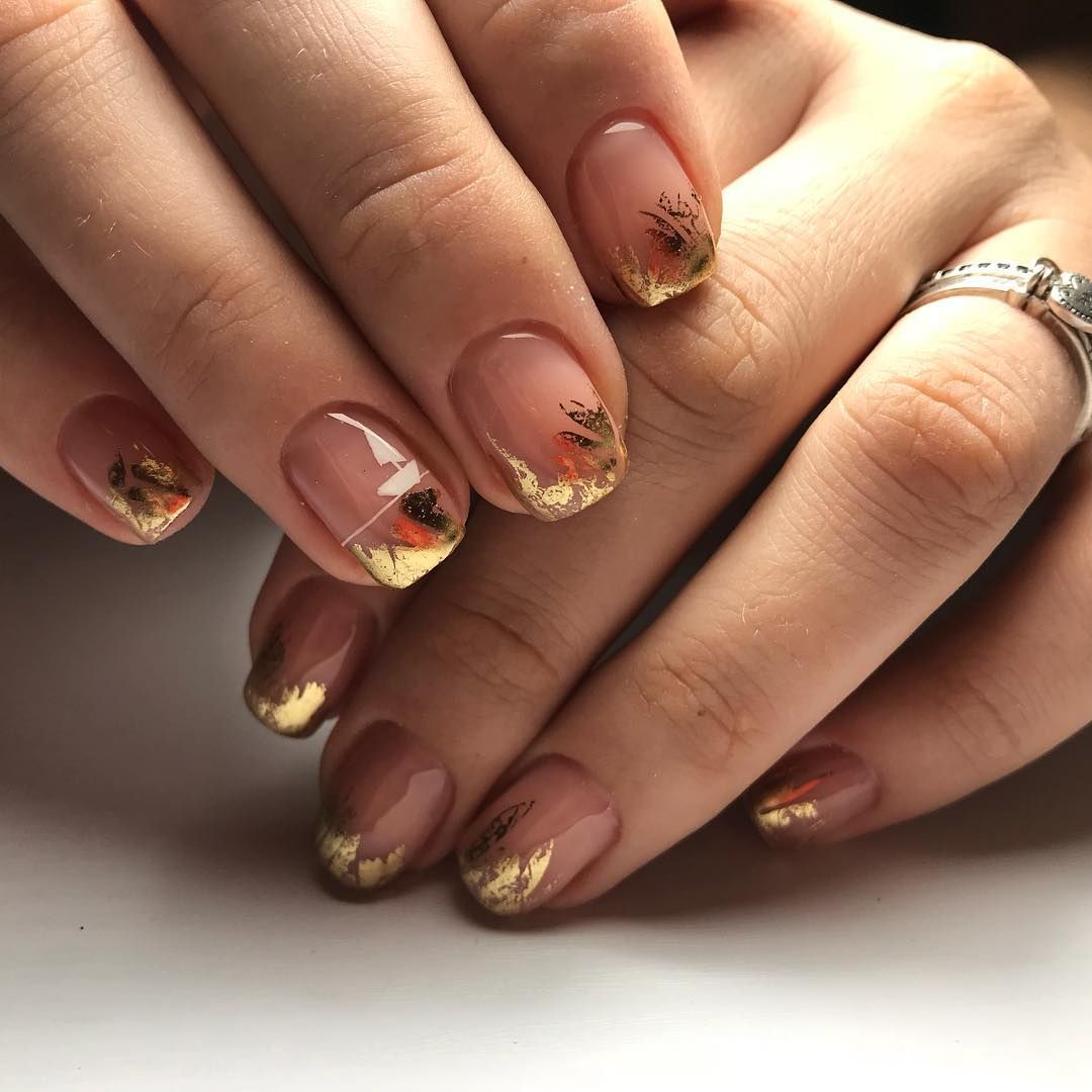 Les éléments en feuille sont souvent utilisés comme décor. En raison de la diversité de leurs espèces, les ongles peuvent créer un effet complètement différent. Par exemple, un morceau de papier aidera à faire des empreintes sur le bout des ongles. Cette conception est très jolie, mais pas provocante. La même chose peut être dite de kamifubuki.