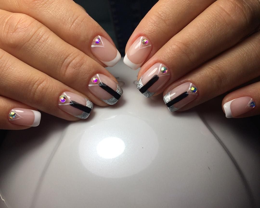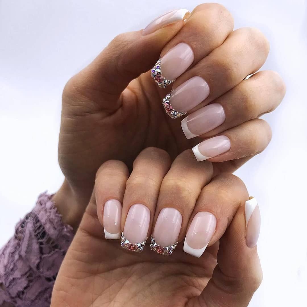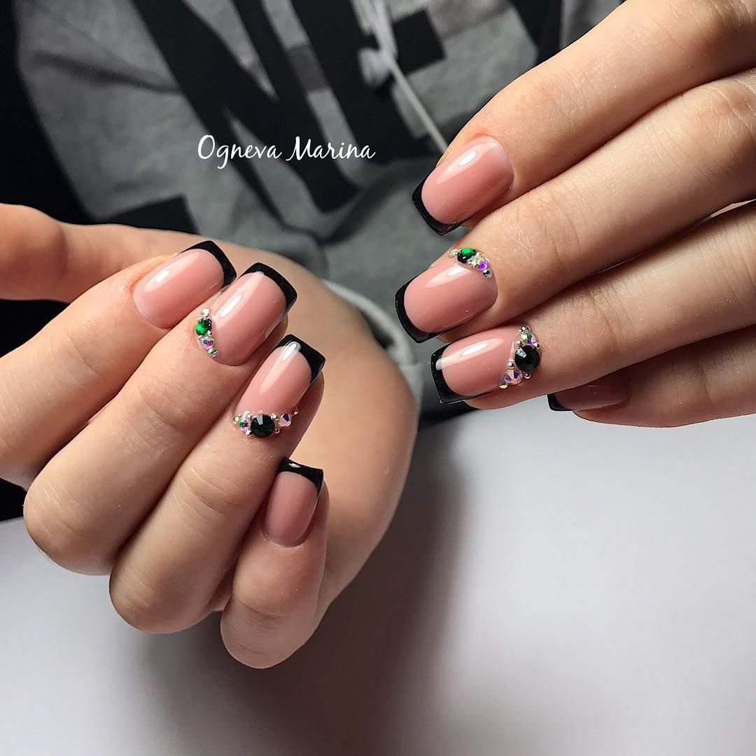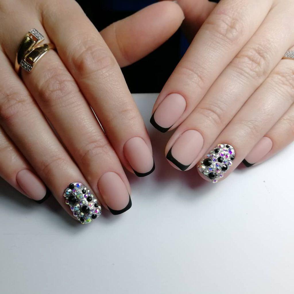 Les cailloux et les strass sont à juste titre considérés comme les options les plus populaires. Ils sont utilisés littéralement partout. Autrement dit, vous pouvez décorer plusieurs clous avec un petit nombre de détails ou les recouvrir complètement de décor.
