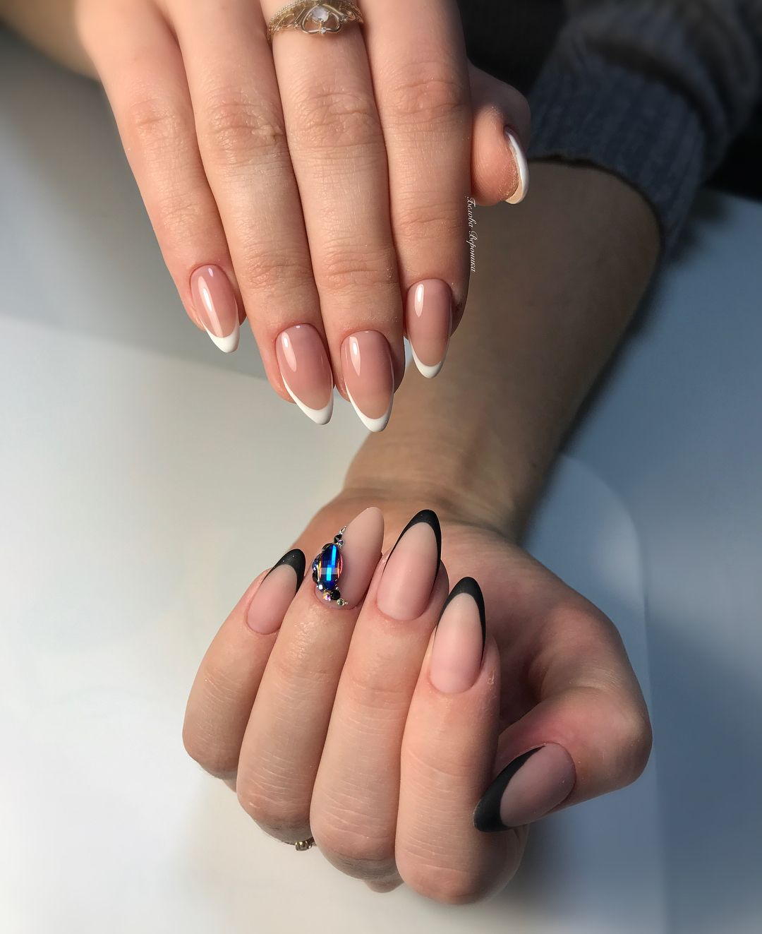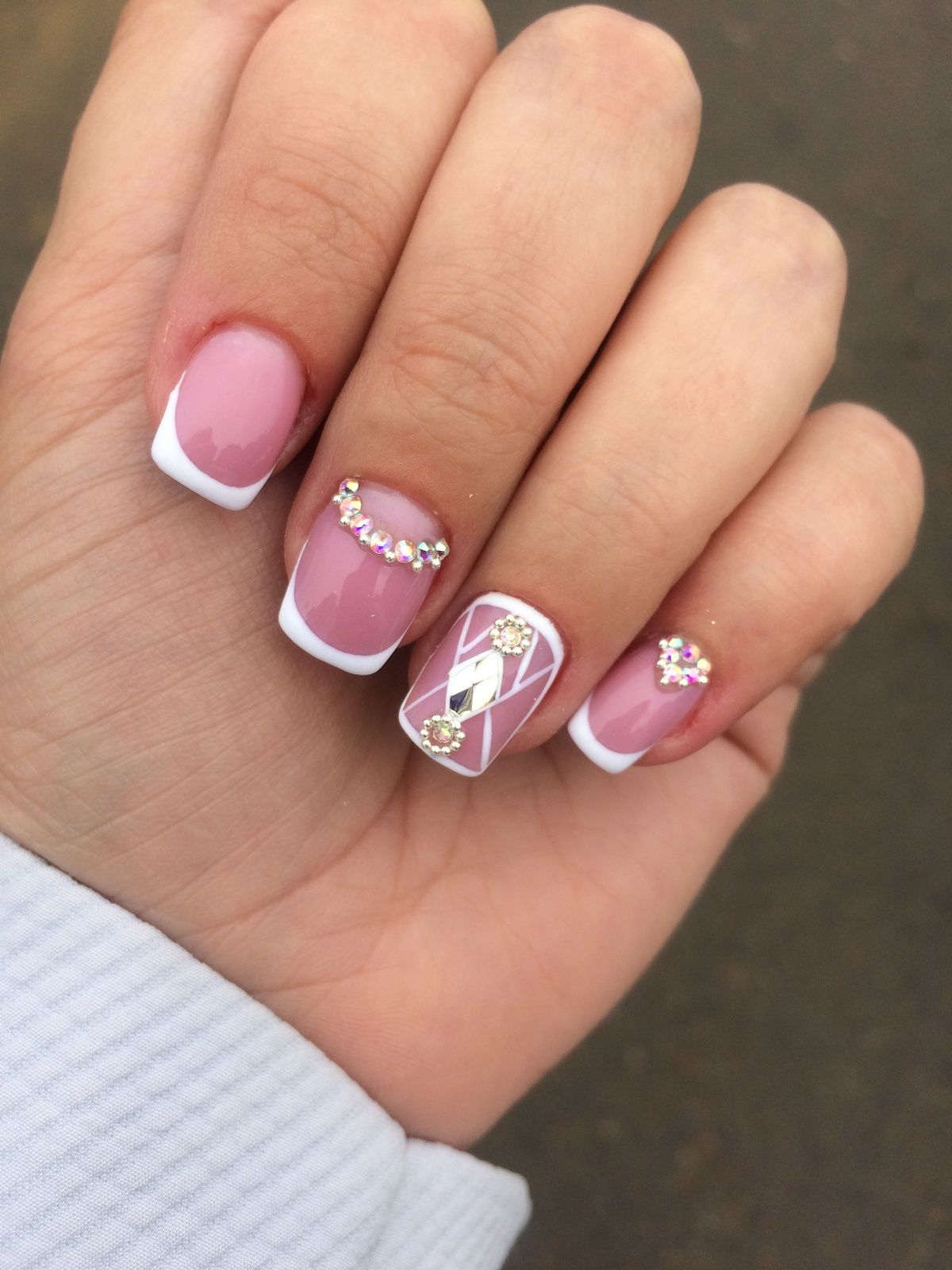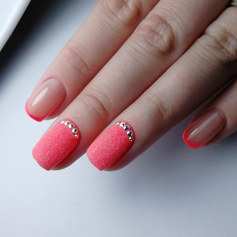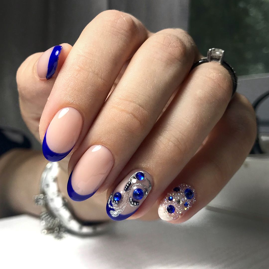 Les cailloux et les strass sont à juste titre considérés comme les options les plus populaires. Ils sont utilisés littéralement partout. Autrement dit, vous pouvez décorer plusieurs clous avec un petit nombre de détails ou les recouvrir complètement de décor.