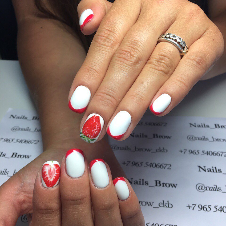 Par exemple, en été, les filles décorent souvent les ongles avec l’image de la crème glacée, des cocktails et même de leurs fruits préférés. Une telle conception a toujours l’air particulièrement fraîche, lumineuse. Par conséquent, il va bien avec de nombreuses tenues de saison.