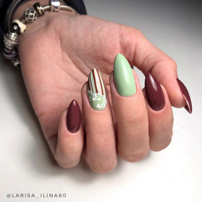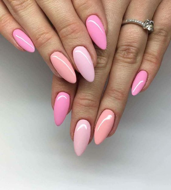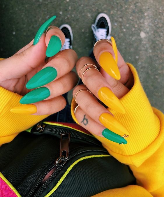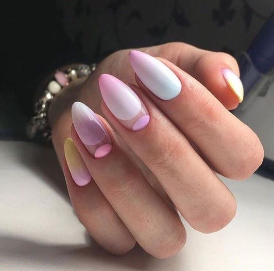 Aussi une bonne option serait le vert, le rose, l’orange et d’autres couleurs vives. Ils complètent à la perfection l’arc stylisé aussi bien en vacances que dans la vie quotidienne urbaine. À propos, ceux qui aiment une combinaison de plusieurs nuances sont particulièrement chanceux. N'hésitez pas à faire une manucure à gradient vertical ou horizontal.
