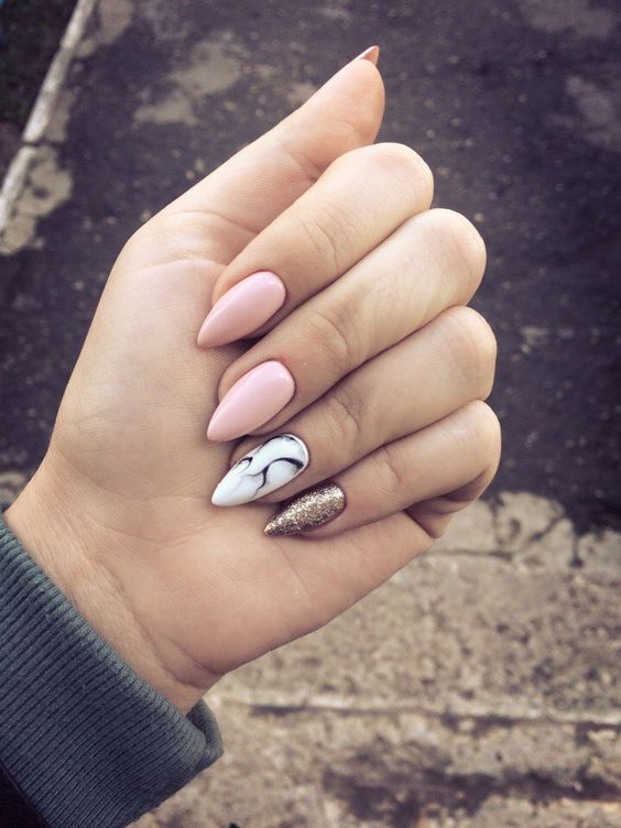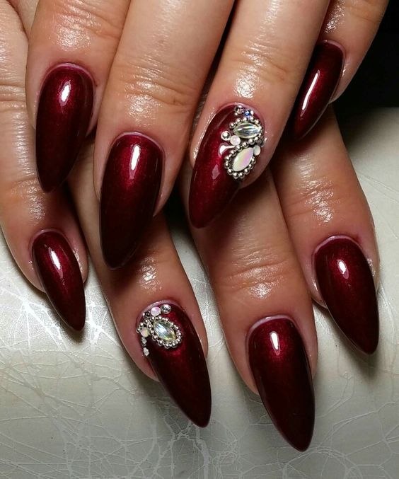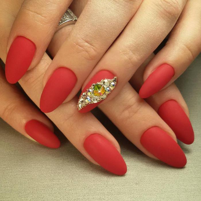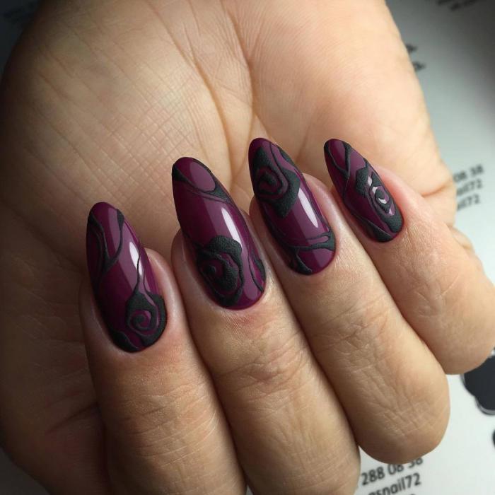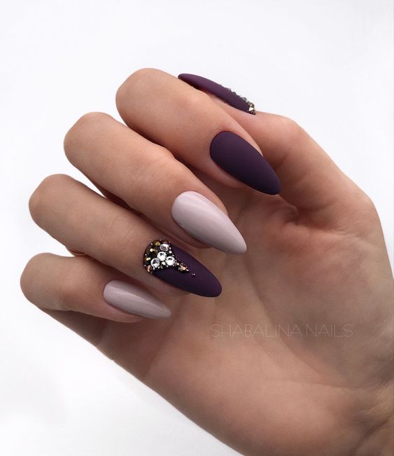 En ce qui concerne les nuances de vernis pour cette forme de clous, il en existe beaucoup en 2026. Tout d'abord, il convient de noter le design dans des tons sombres de violet, rouge, gris, bleu, prune et autres. Cette solution sera la meilleure option pour créer un look de soirée luxueux. Dans le même temps, vous pouvez le compléter en toute sécurité avec un petit décor en forme de strass ou de paillettes. Tout cela sera vraiment approprié.