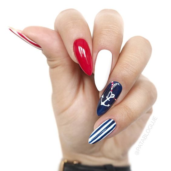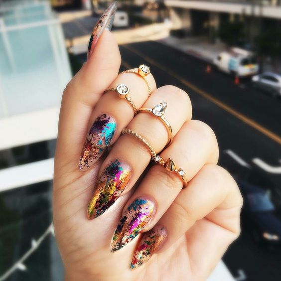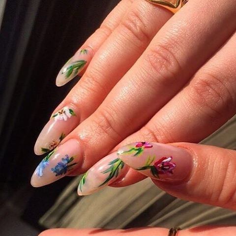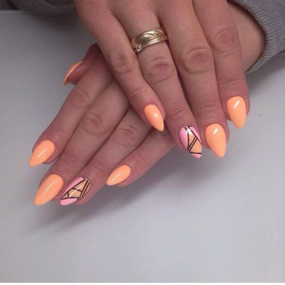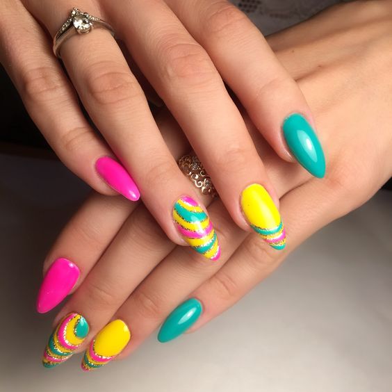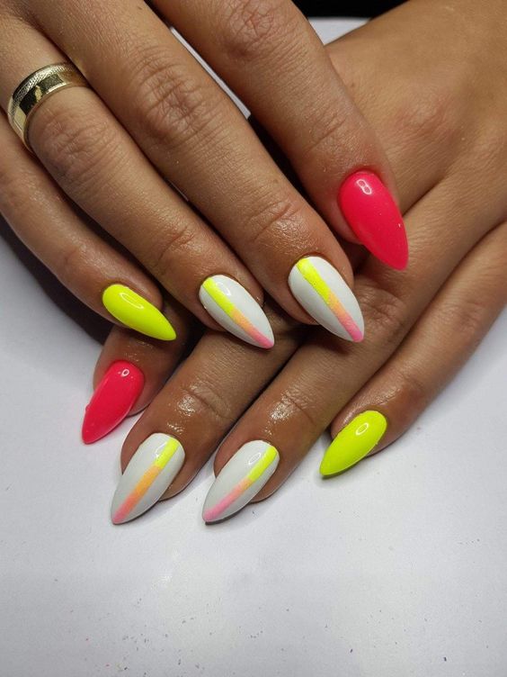 Manucure d'été sur des ongles pointus