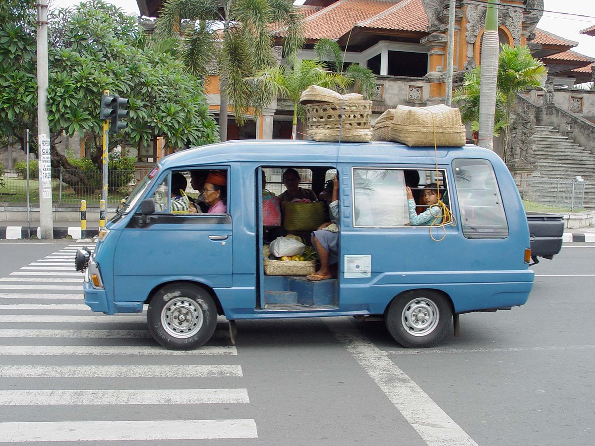 Les minibus locaux à Bali s'appellent Bemo. Pour l'arrêter, il suffit de lever la main. Voyage à Bemo coûte 4-5 mille roupies (16-20 roubles). Cependant, il est plutôt gênant de s'y installer, car il n’ya pas de climatisation et pas assez d’espace.