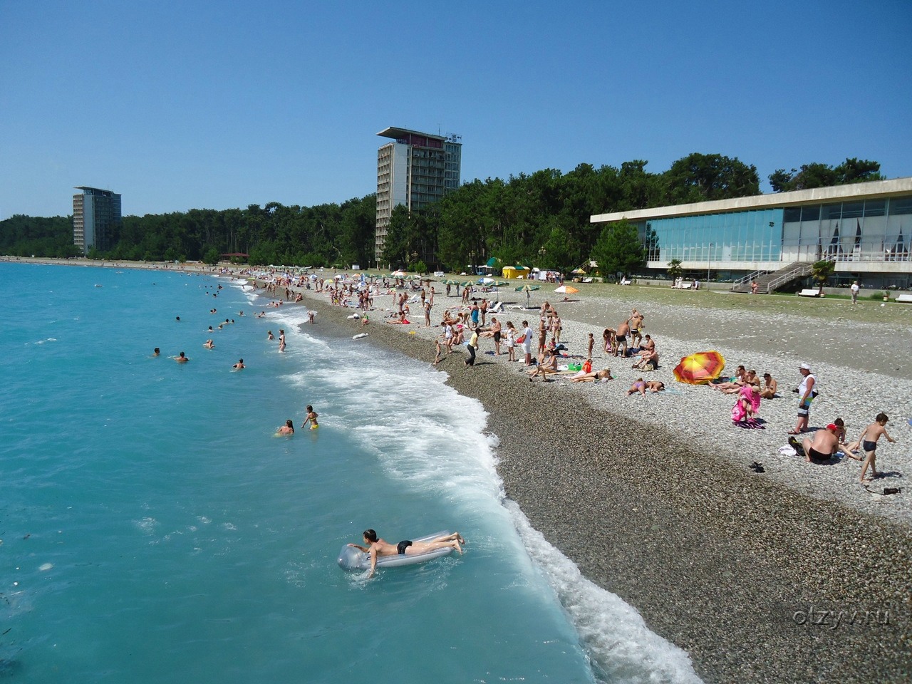 La zone côtière de Pitsunda est une longue plage. S'il n'y a pas de tempête, l'eau de la mer Noire dans la région de Pitsunda est très claire. Les plages de la ville sont gratuites et elles sont toutes en galets. La ville et la côte sont séparées par une pinède. Et sur la côte elle-même, il existe une union de pensions "Pitsunda Resort". Sur le chemin de la mer, il y a des magasins de fruits, des boutiques de souvenirs et de nombreux cafés. Du centre-ville à la plage, vous devez surmonter une distance de 800 mètres. Il y a généralement peu de monde sur les plages et si vous allez un peu plus loin sur la côte, il est alors facile de trouver des endroits où il n'y a pratiquement pas de vacanciers.