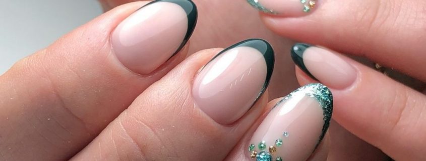 Pour les filles extraordinaires qui aiment effectuer des options de manucure audacieuses et attrayantes, les maîtres d'art des ongles offrent une couleur noire pour la coloration des sourires français. Cette option semble plutôt mystérieuse et inhabituelle. Pour un effet plus modeste, le noir est combiné au blanc. Cette combinaison est très originale sur chaque ongle. Dans ce cas, la moitié du souci est faite de vernis blanc et l’autre est noire.