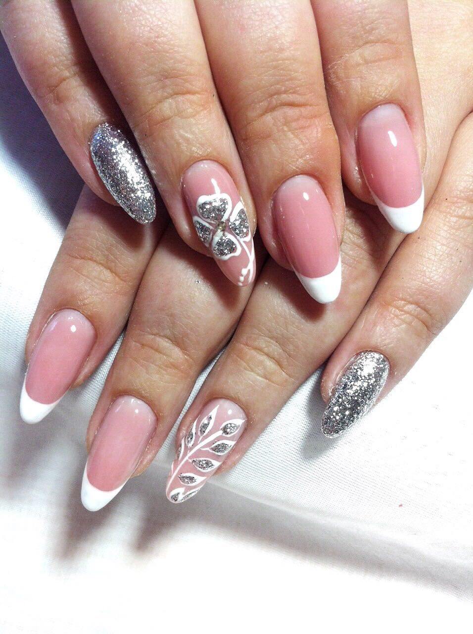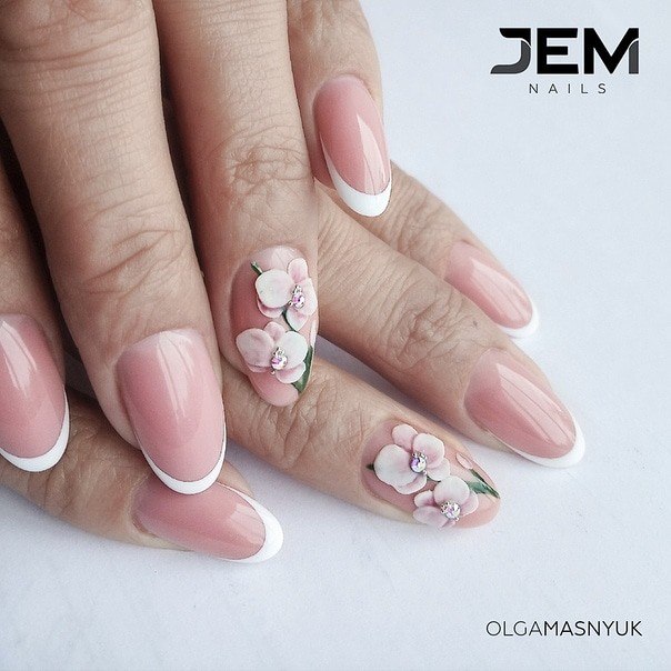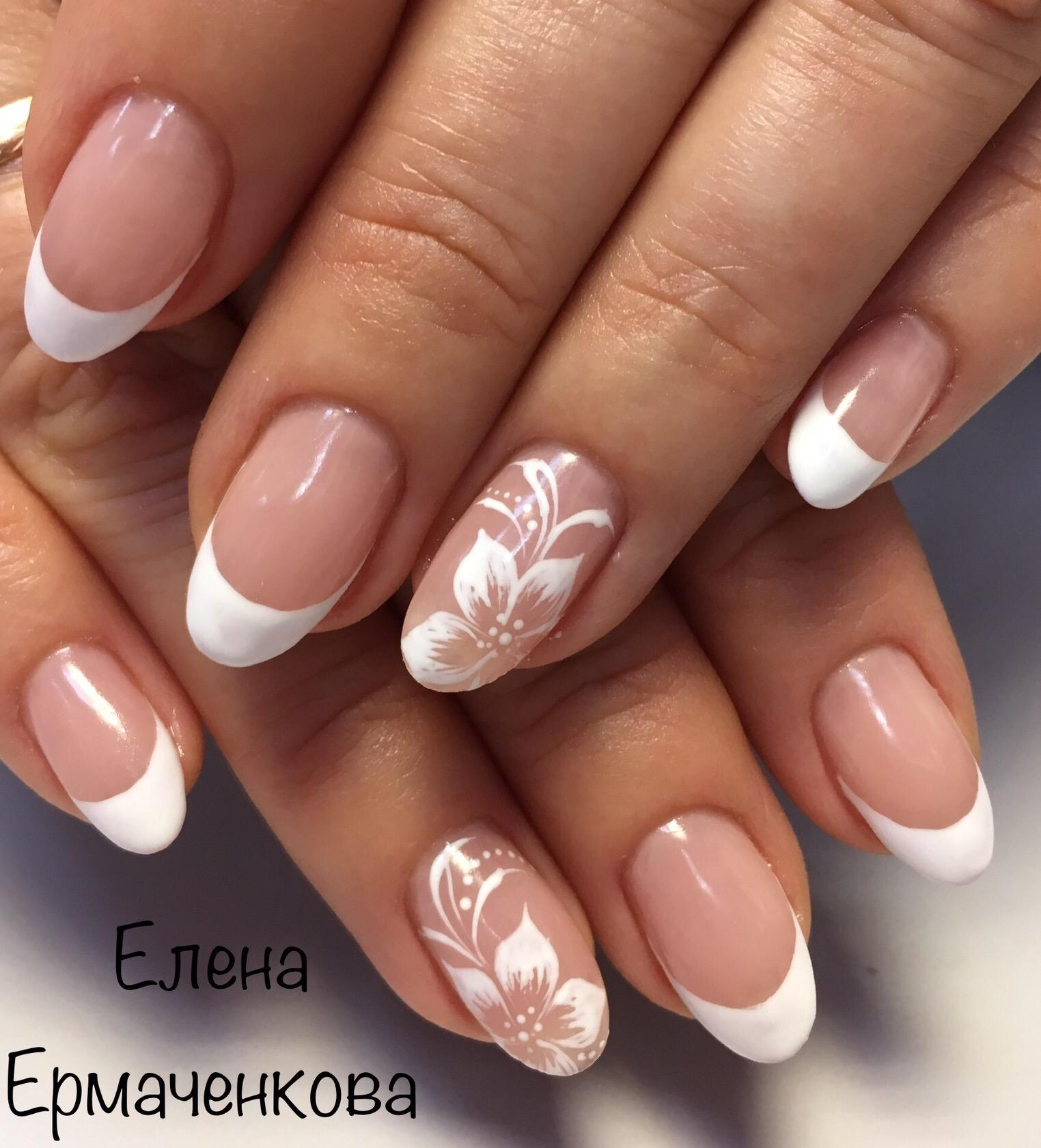 Dans la plupart des cas, la manucure française est réalisée dans une couleur blanche délicate. C'est cette couleur qui peut donner l'image d'une fille innocence et romance. La veste blanche est considérée comme une option universelle, car elle convient à la fois aux vêtements de bureau et aux robes décontractées. Ovale French est entré dans la mode relativement récemment. Par conséquent, les maîtres d'art des ongles utilisent souvent cette forme particulière de veste. Il existe un grand nombre d'idées belles et sophistiquées qui sont parfaitement combinées avec des éléments décoratifs supplémentaires, tels que des fleurs, des strass, des bouillons, des confettis et autres.