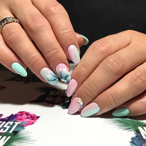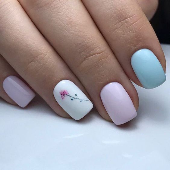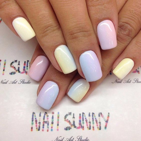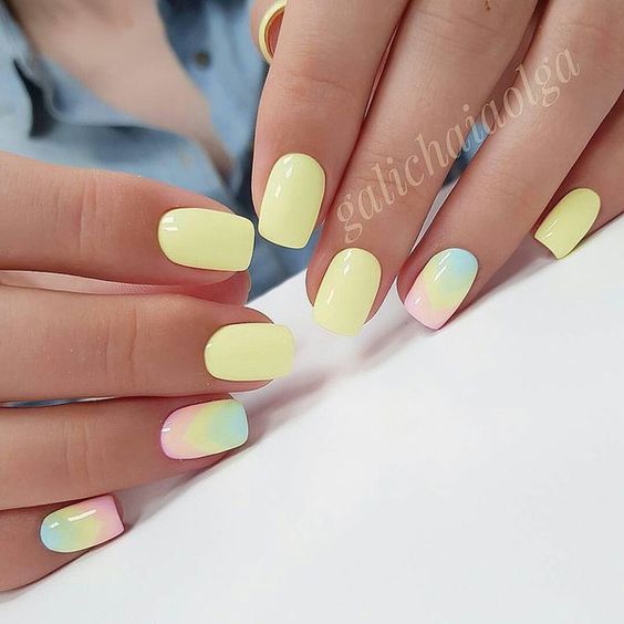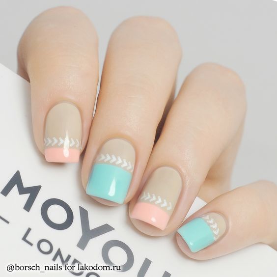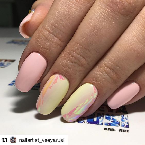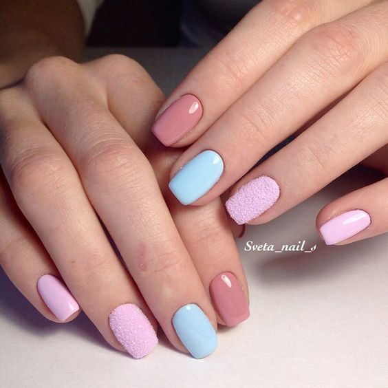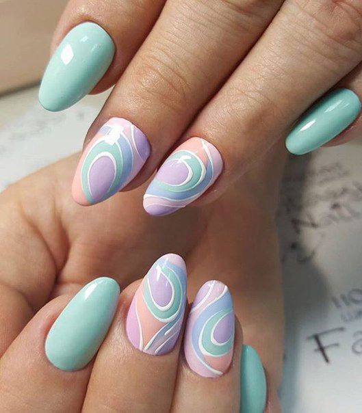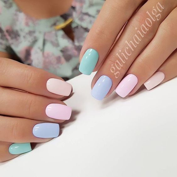 La combinaison de couleurs vives dans une manucure a souvent l’air insipide, ce qui n’est pas le cas des couleurs pastel. Ils ont fière allure et conviennent non seulement pour la saison estivale.