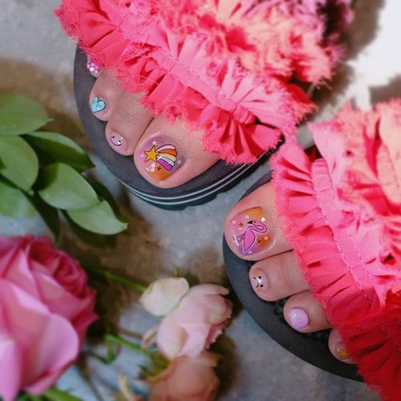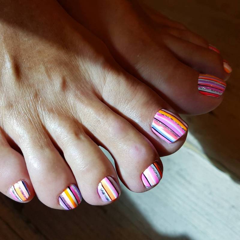 Les ombres portées sur les ongles attirent toujours l'attention et à l'été 2026, la pédicure à motif dégradé est une solution concrète. Toute la beauté de combiner vos nuances préférées dans une pédicure créera un look estival et à la mode. Un ombre composé de deux ou plusieurs teintes de vernis est magnifique et mettra définitivement en valeur la beauté des jambes de femme. En ajoutant un peu de strass ou de cristaux à une telle pédicure, vous obtenez un look exquis et à la mode.