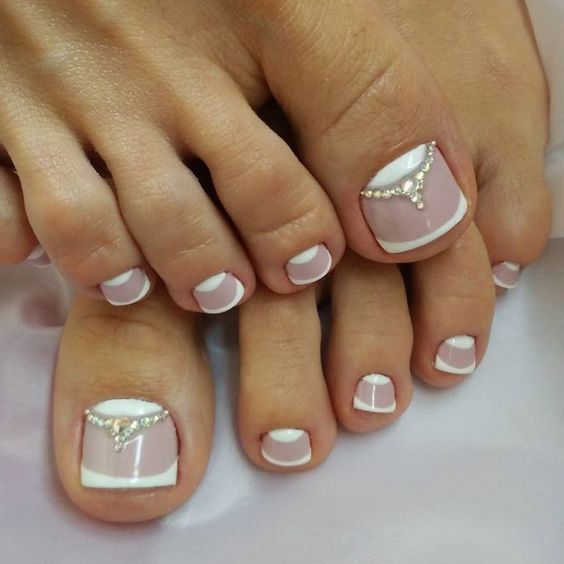 Pédicure française avec strass - succès de la saison estivale 2026