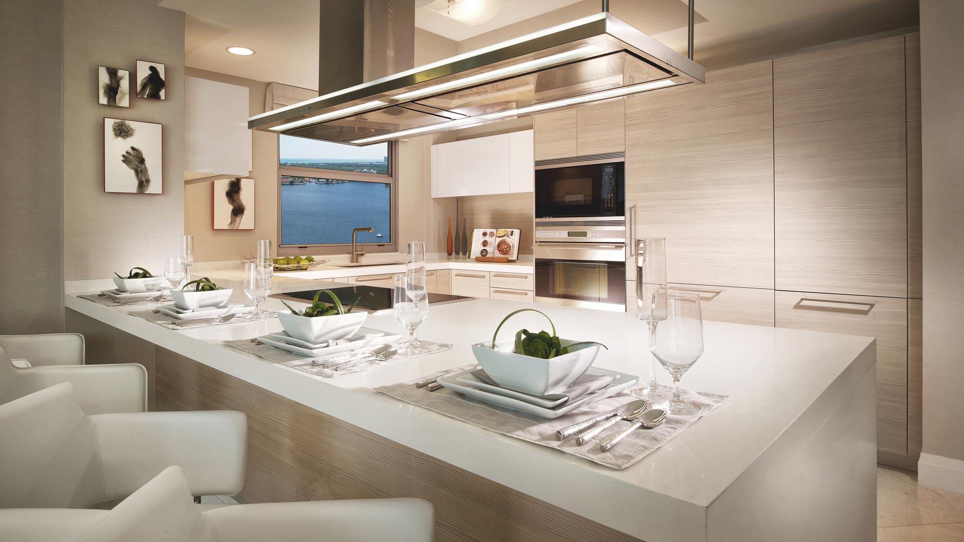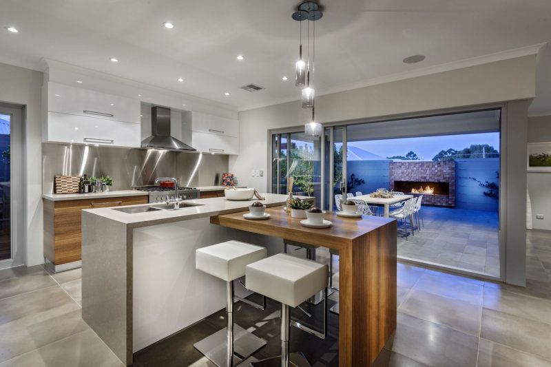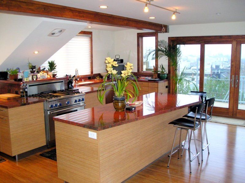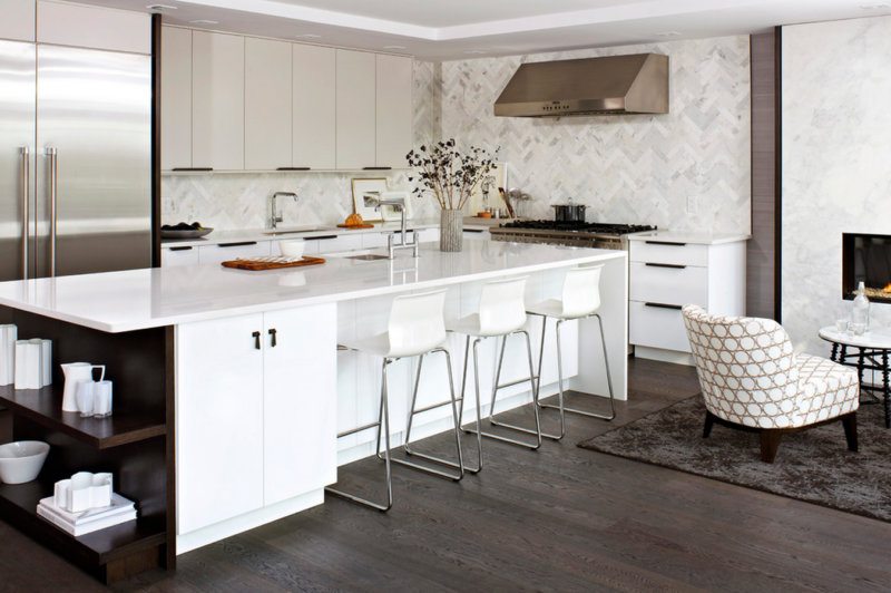 L'île peut être équipée d'une plaque de cuisson, d'un évier, d'un réfrigérateur à vin, d'un lave-vaisselle. Les avantages de ce type d’agencement sont une fonctionnalité élevée, la création d’un espace efficace et unifié. Malheureusement, la disposition des îles ne convient pas aux petites pièces.